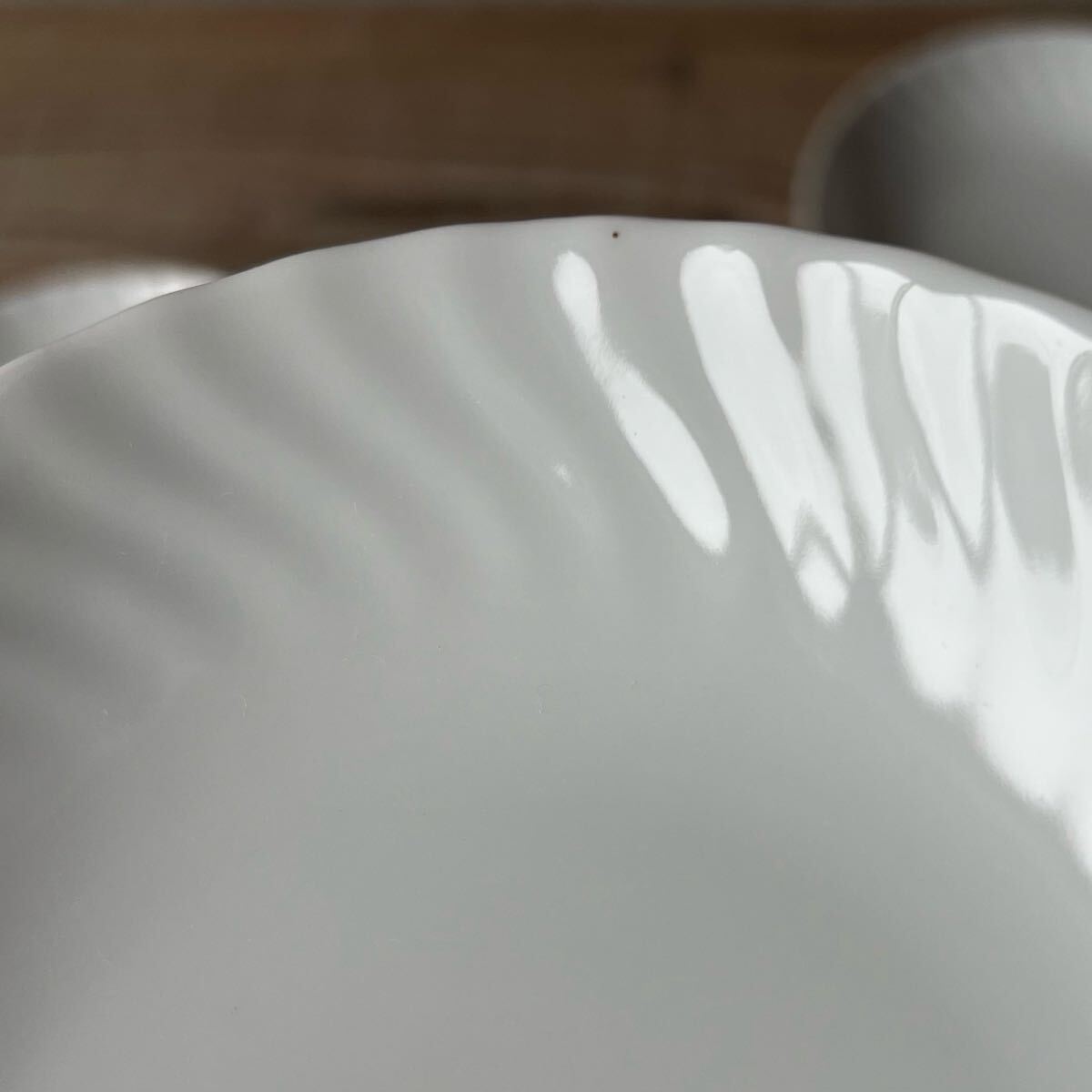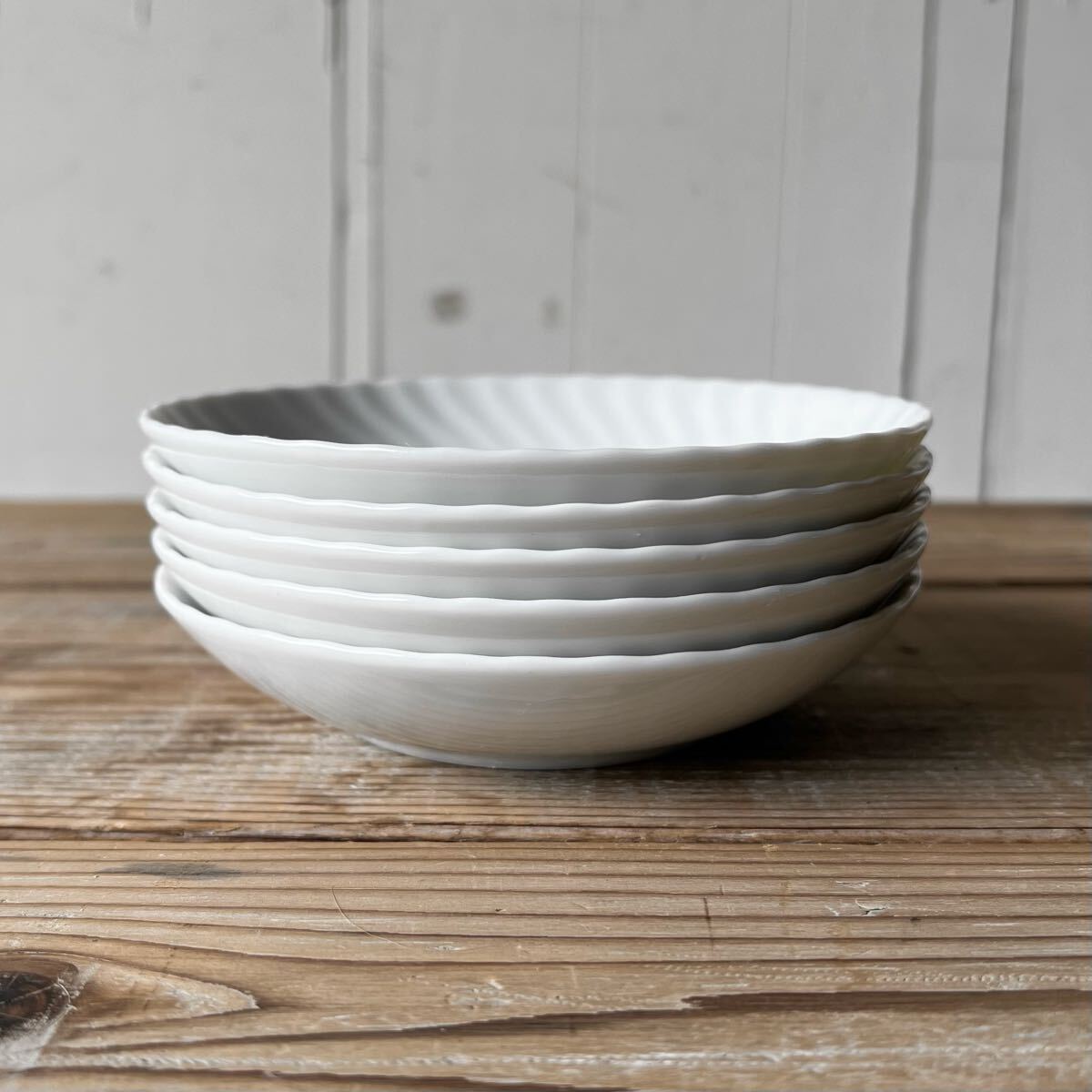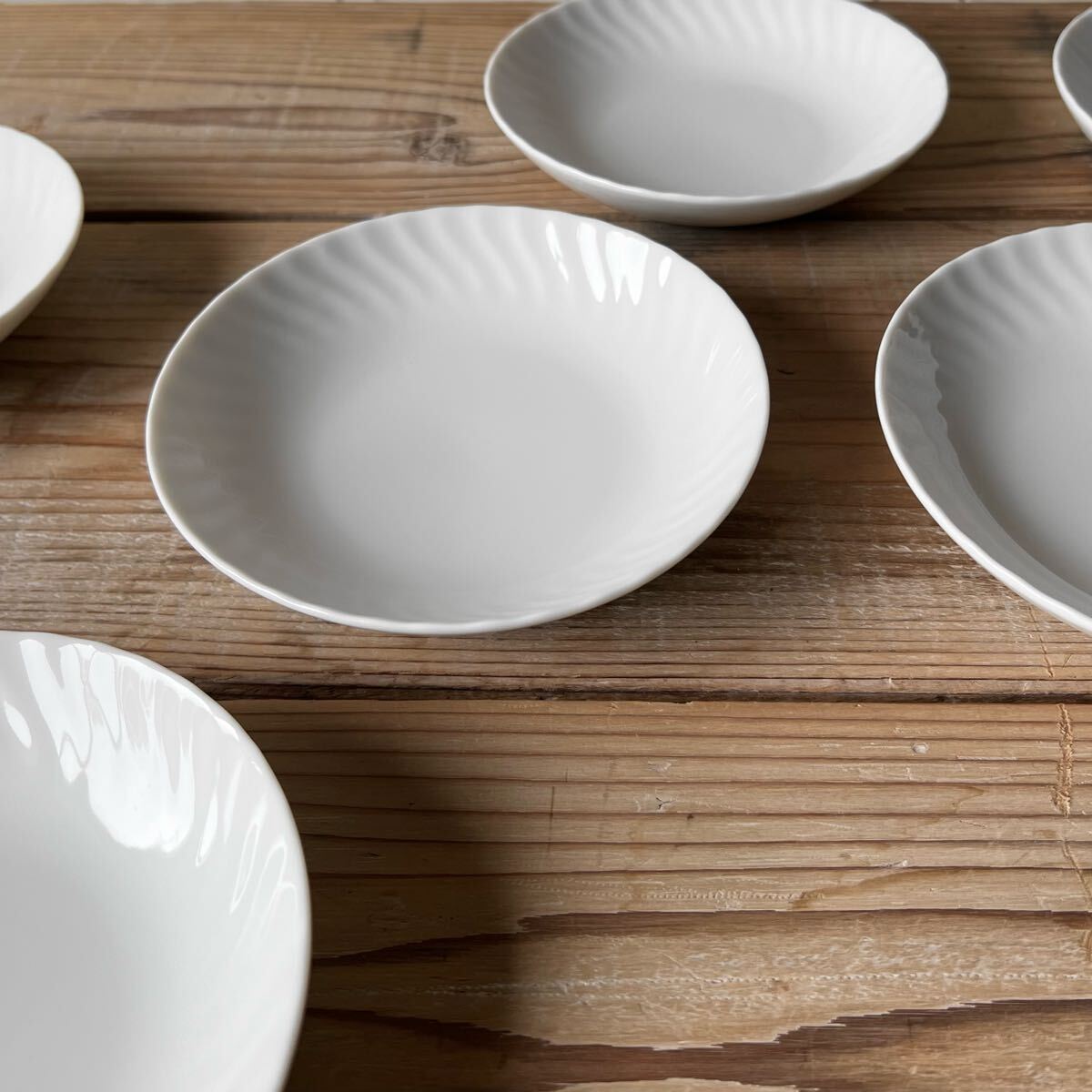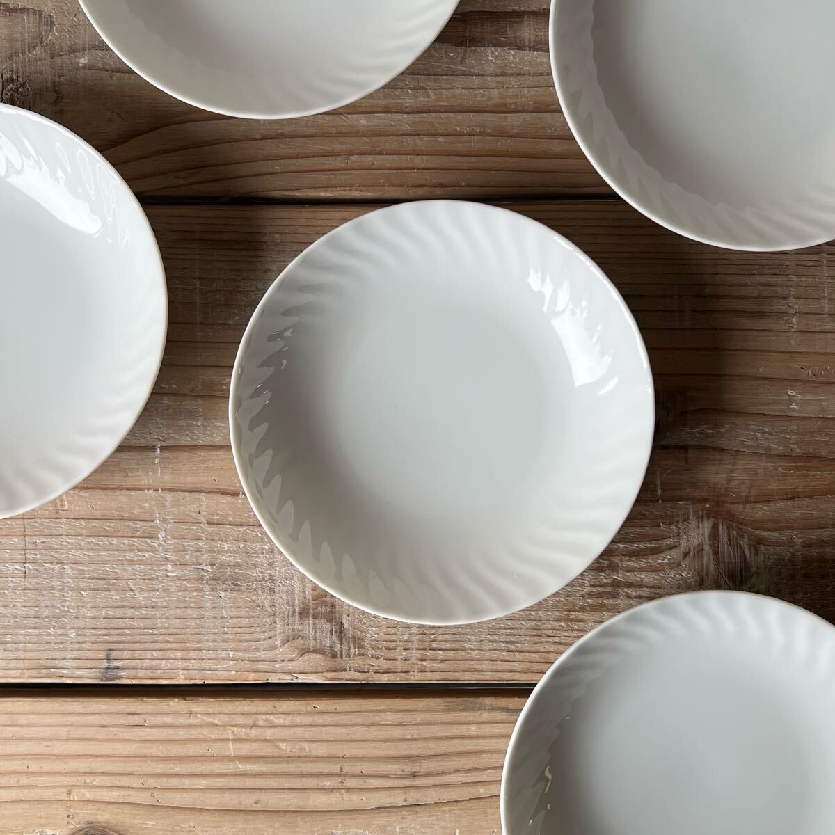 5枚set φ14cm 細波ボウル 小プレート デッドストック 陶器 白磁 検: 取り皿 小皿 サラダ 銘銘皿 レトロ ビンテージ アンティーク 洋食器