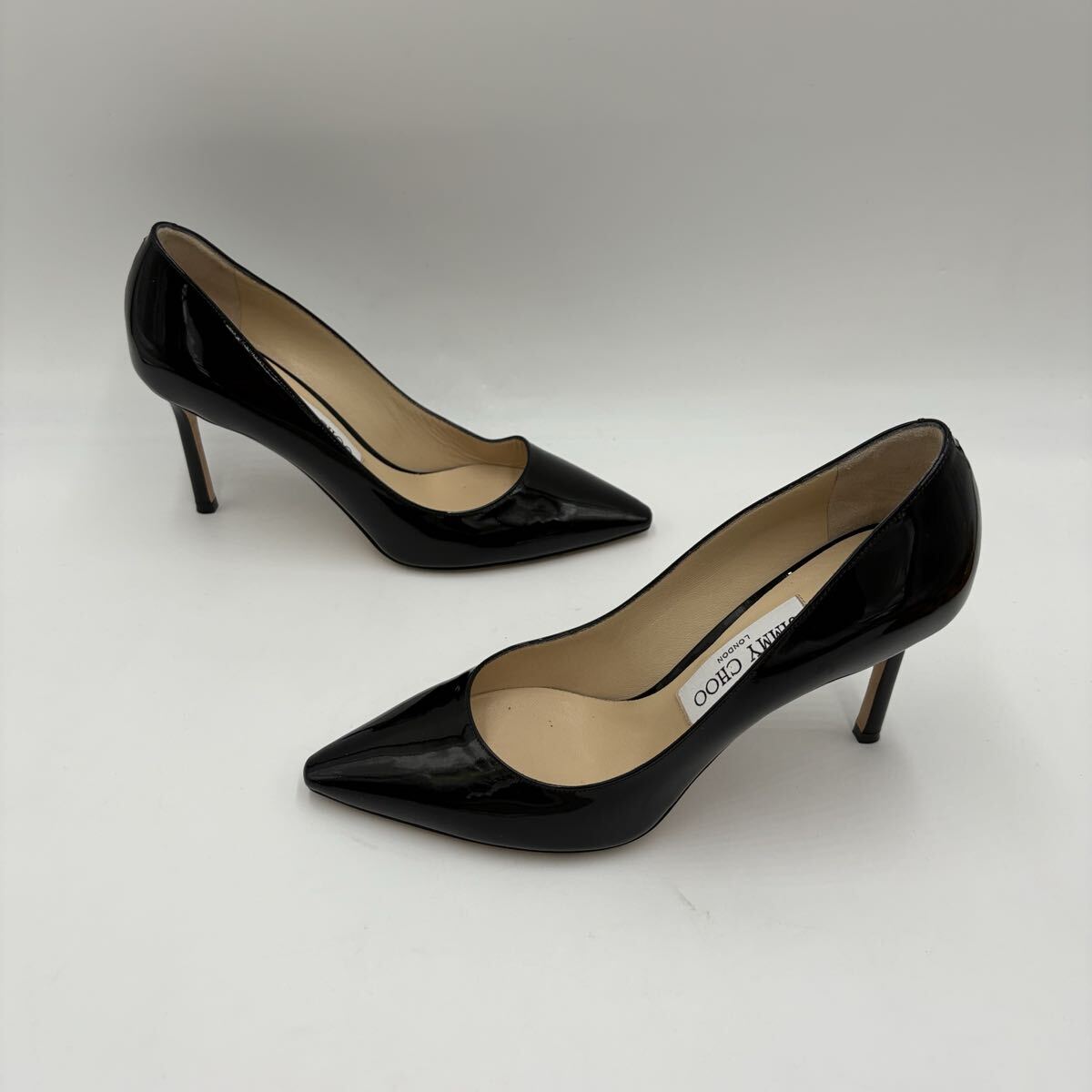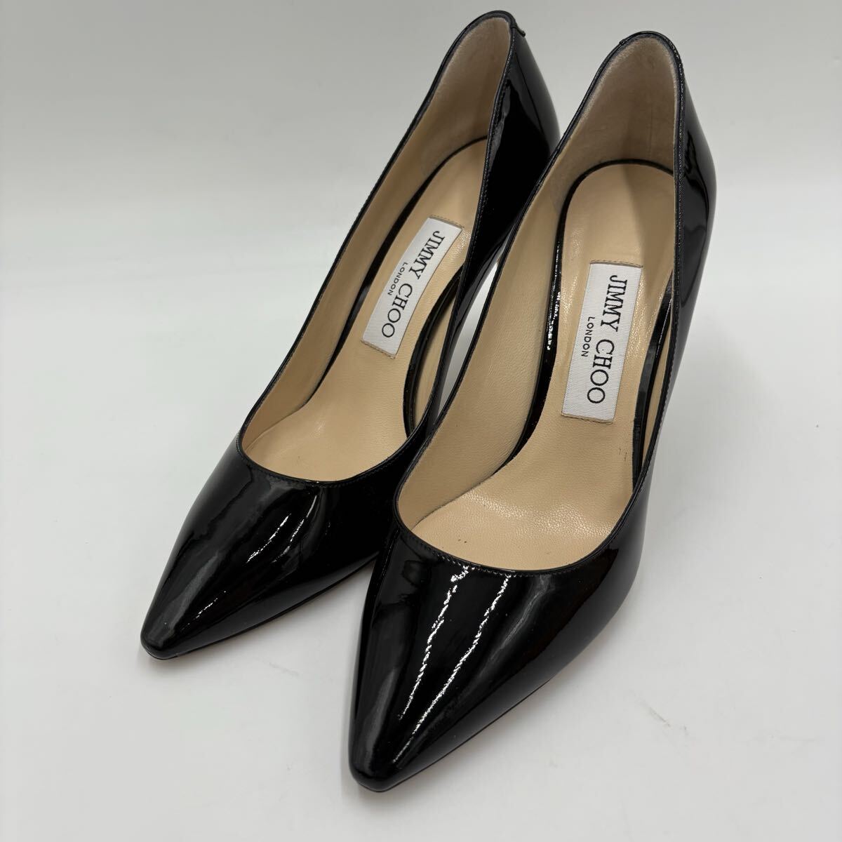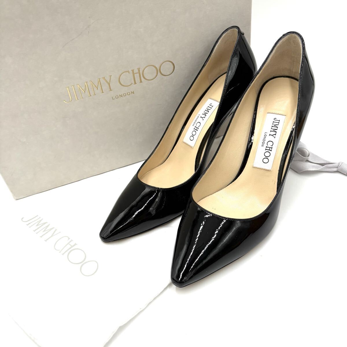 3Q ■ ほぼ美品 / 付属品完備 'イタリア製' 高級感溢れる JIMMY CHOO ジミーチュウ 本革 パテント ヒール パンプス EU37 23.5cm 婦人靴