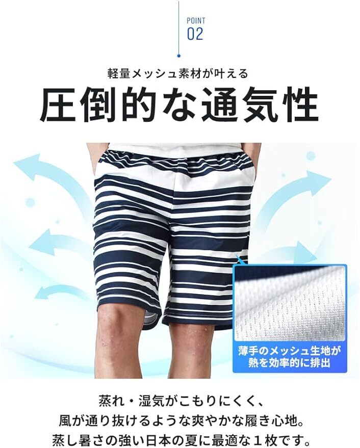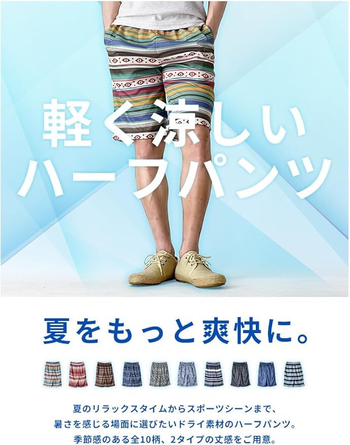 Mサイズ ネイビー、エスニック色 ストレッチ ハーフパンツ ショートパンツ メンズ ステテコ 速乾