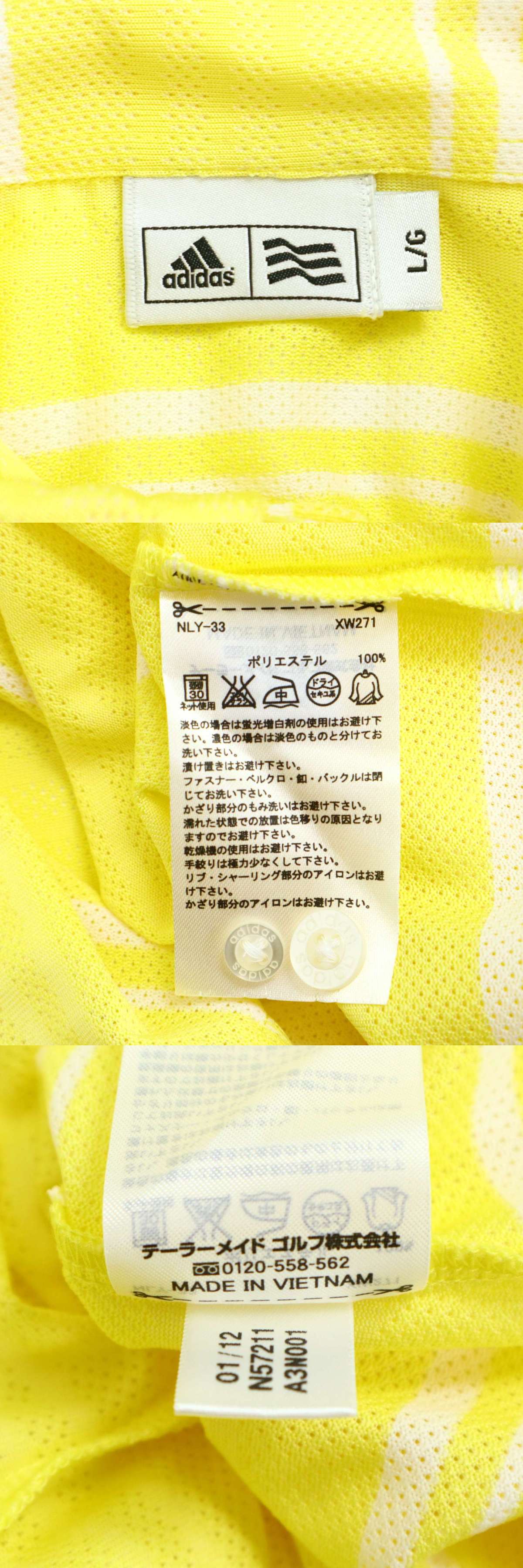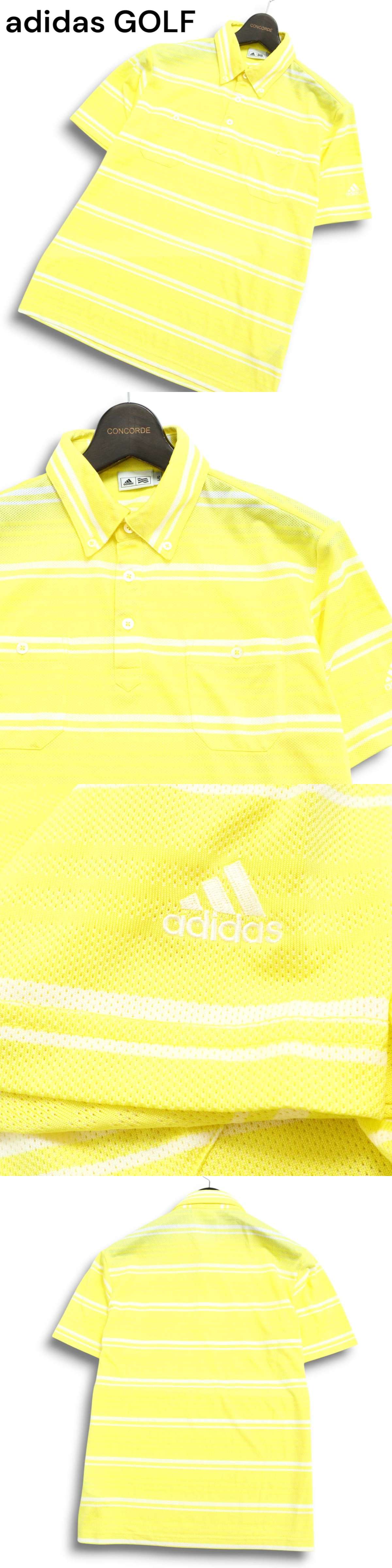 adidas GOLF アディダス ゴルフ 春夏★ 半袖 ボーダー ボタンダウン ポロシャツ Sz.L メンズ 黄色