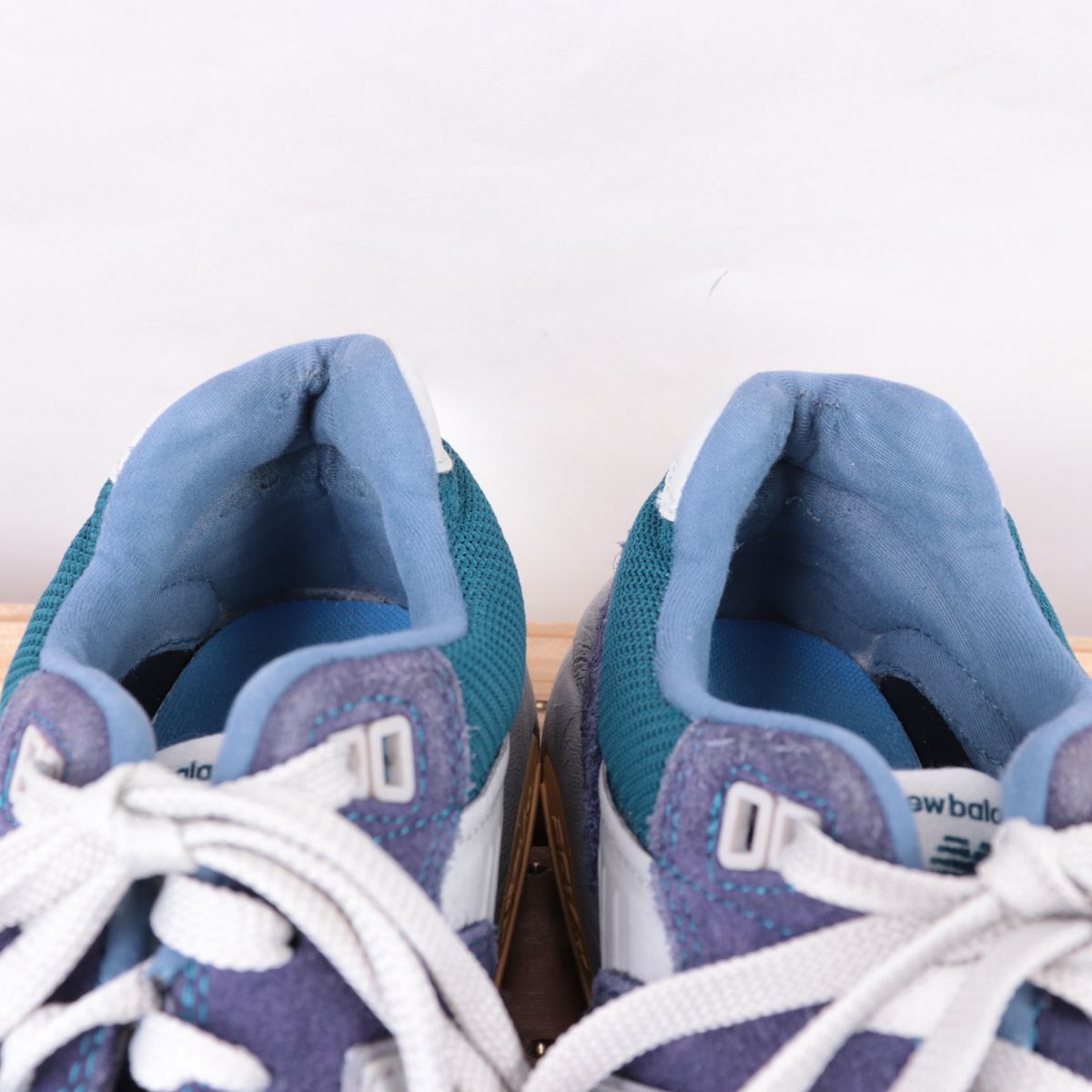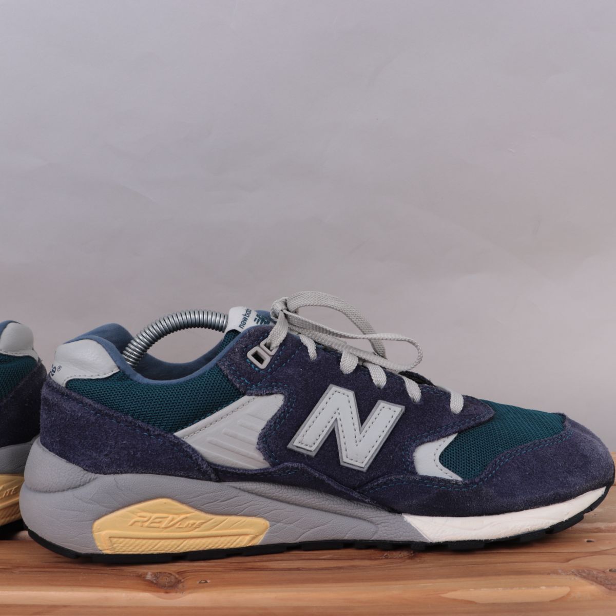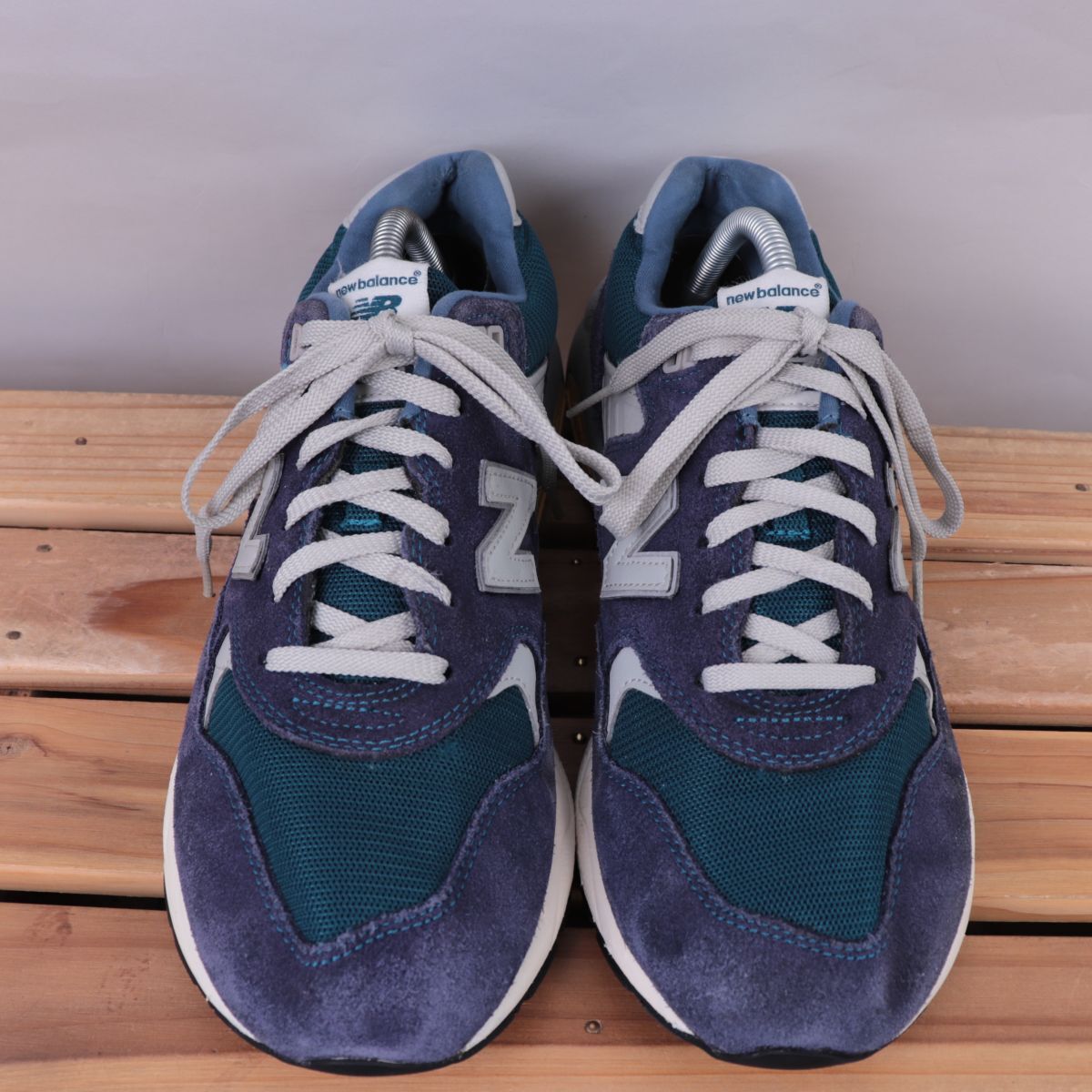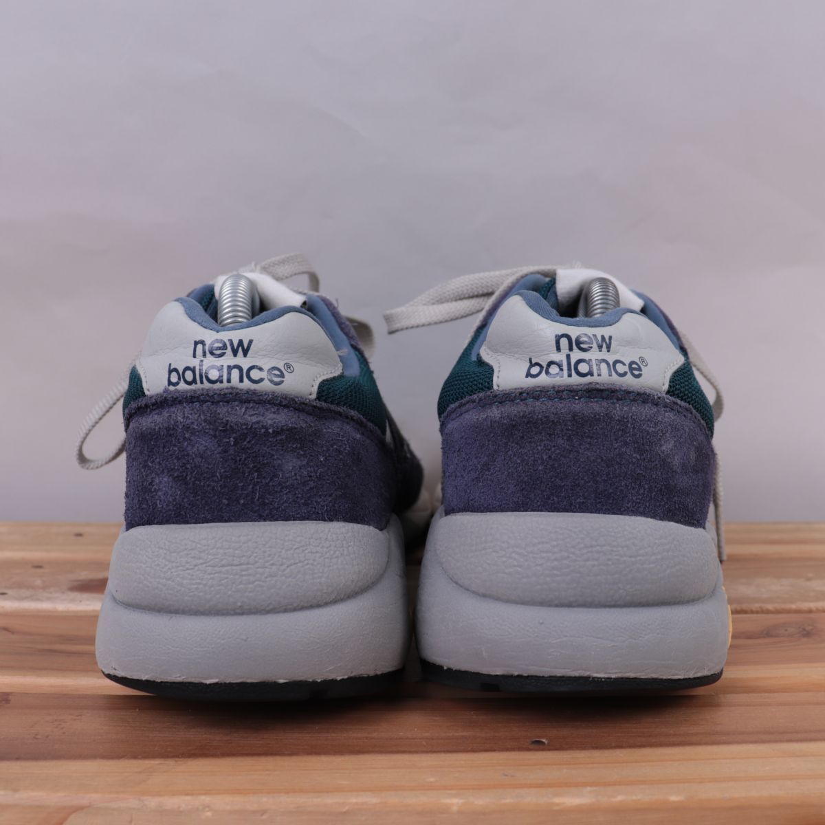 z917【580】ニューバランス US9 27.0cm/紺 ネイビー ブルーグリーン グレー newbalance メンズ スニーカー 中古