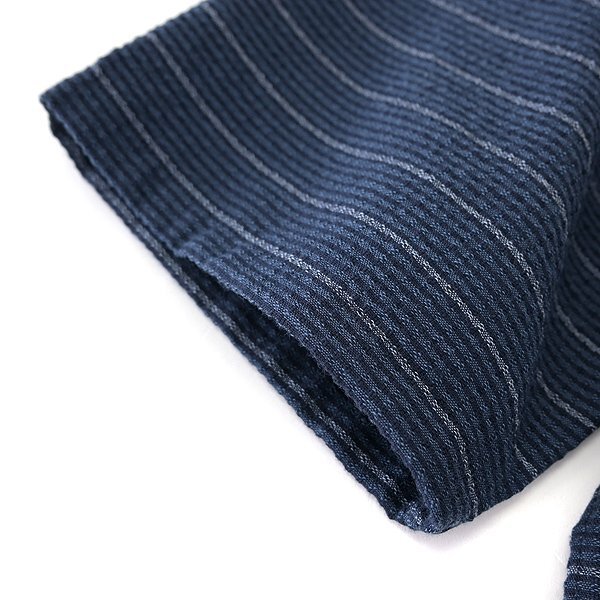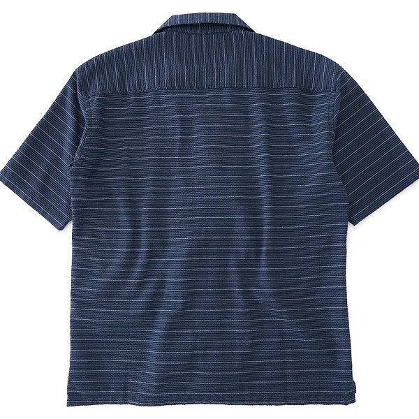 爽やかなボーダー柄が配色されたしじら織りオープンカラーシャツです。 日本の伝統素材であるしじら織りは、シアサッカーと同じく生地に凹凸感があって肌への接地面積が少ないためベタつかず、風通しがよくシワになりにくいため夏の衣料品に多く用いられる素材です。 コットン×ポリエステルのしじら織りは吸汗速乾性や通気性に優れており、蒸し暑い日本の夏も快適に過ごせます。 一枚で着るのはもちろん、Tシャツの上にサッと羽織るだけでコーディネートにスパイスを加えることができます。 首元がスッキリと開いたオープンカラー(開襟)のデザインは、羽織りやすく人気のアイテムです。 ちょっとした小物の収納に便利な胸ポケット付きです。 |