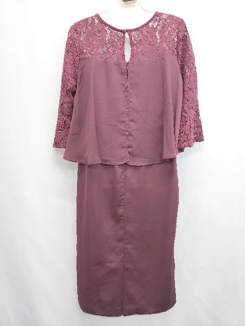 ◇ ⊂ GIRL ガール レース ペプラム パーティードレス 七分袖 膝下丈 ワンピース サイズM ボルドー系 レディース E