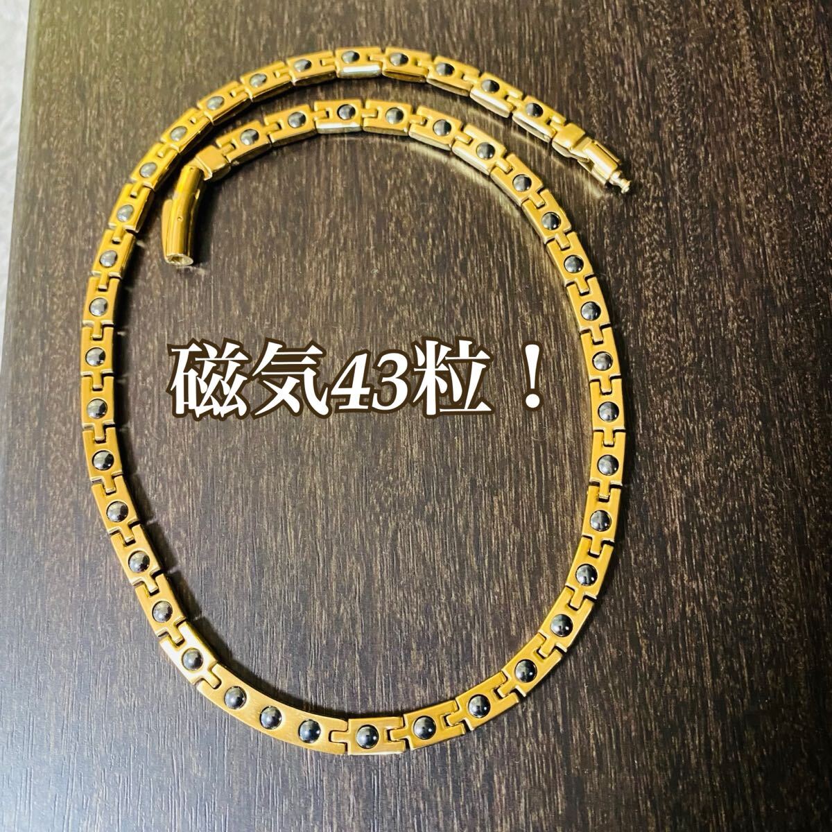 純チタン含有のスチールゴールドチタンネックレスに強磁気なんと43粒付いた人気のチェーンネックレスです。