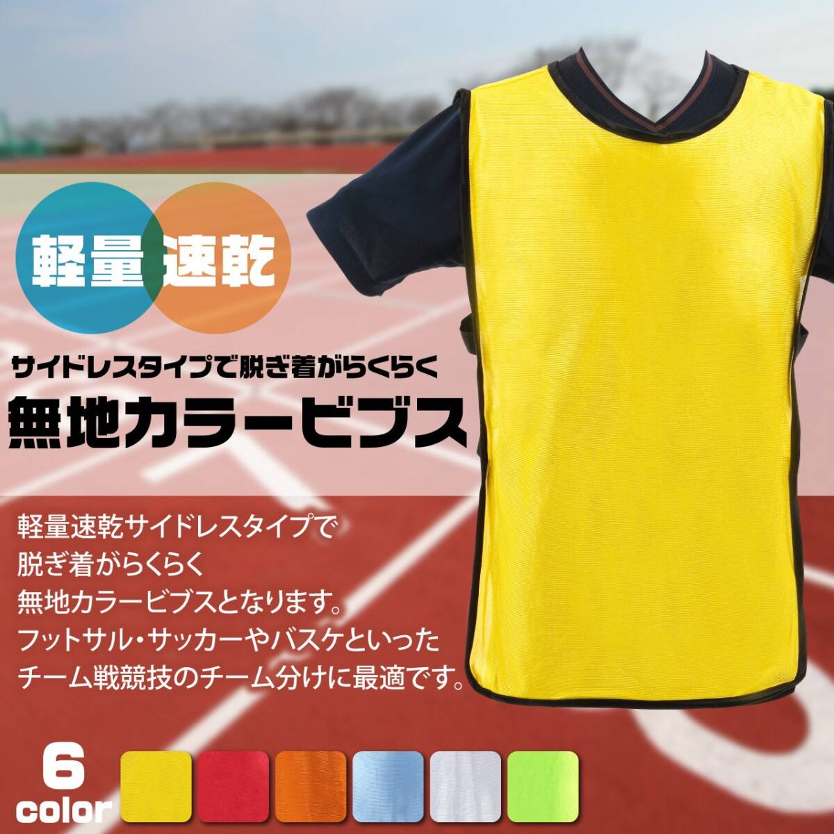 【在庫処分】R-STYLE 軽量 速乾 サイドレスタイプで脱ぎ着がらくらく 無地 カラー ビブス