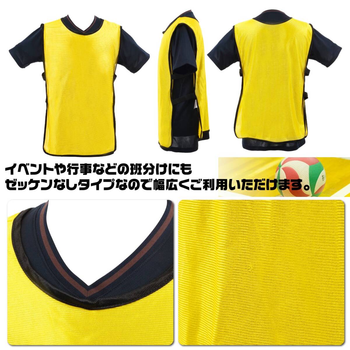 イベントや行事などの班分けにもゼッケンなしタイプなので幅広くご利用いただけます。注)写真はイメージの為黒のTシャツの上に着ています(Tシャツは商品に含まれません)。