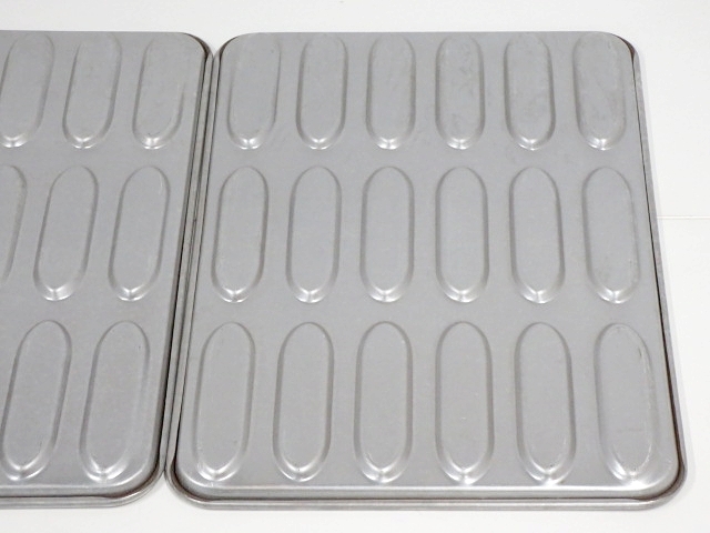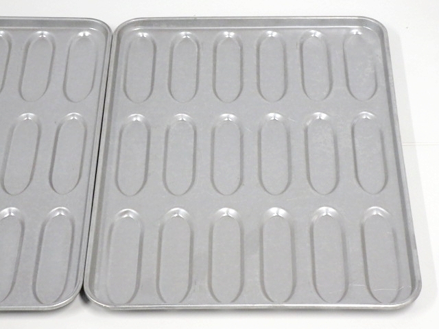 | 【商品説明】 ★ロール型のパンの焼成に最適で、ベーカリーや飲食店の厨房に最適な業務用製品です。 ★表面は触った感触がアルミのようですが、磁石に反応することからアルミメッキ鋼板と推測されます。 ★ただし、素人による推定のため、ご参考程度にお願いいたします。 ★穴縦150x横40x深さ7(mm)となっており、一度に均一なサイズのパンを18個焼くことが可能です。 ★型離れを良くし、パン生地が広がりにくい設計で、パンの形状をきれいに整えます。 ★シンプルな構造で清掃も簡単、長期間衛生的にご使用いただけます。 【状態:中程度★★★☆☆】 『◎』現状渡し品:ノークレームノーリターンです。 『※』写真や説明文を必ずご確認の上ご検討ください。 『△』中古品につき[シミ][すり傷]等の使用感がございます。 『※』写真に載せきれない部分にも同様の使用感がございます。 『商品仕様』