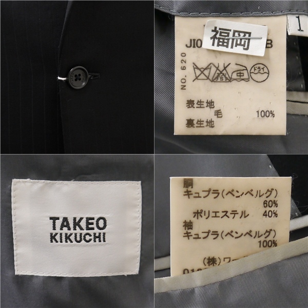 表地(全体的)状態:B(ジャケットの襟首と両袖にてかりと左胸内ポケット縁に変色が見受けられます。スラックス前面の股上から両膝下に弱めのてかりが見受けられます。その他の状態は良い事から、今後もまだまだご愛用頂けるお品だと思われます。)