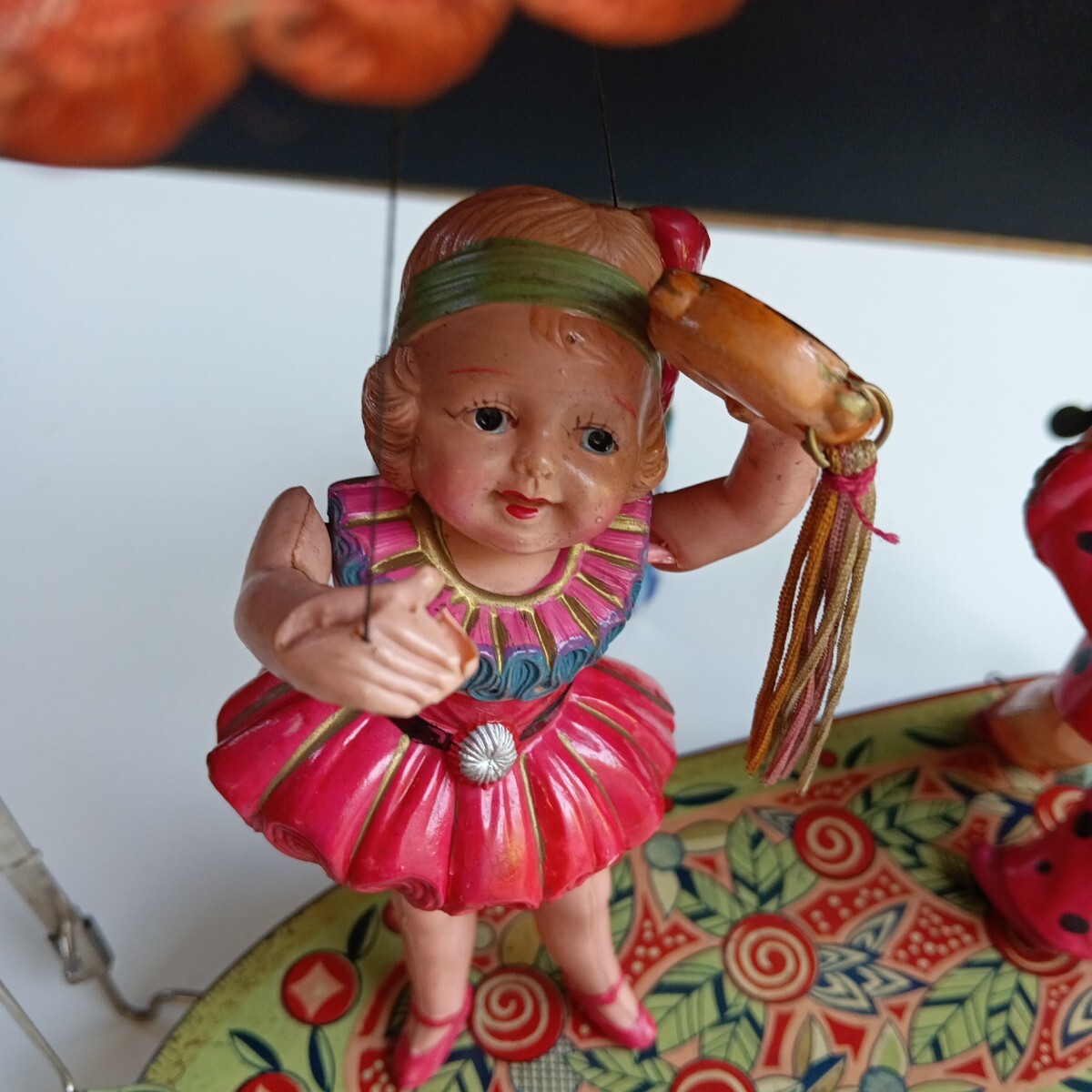 ゼンマイにより、ステージが動いて踊り子が踊ります。
