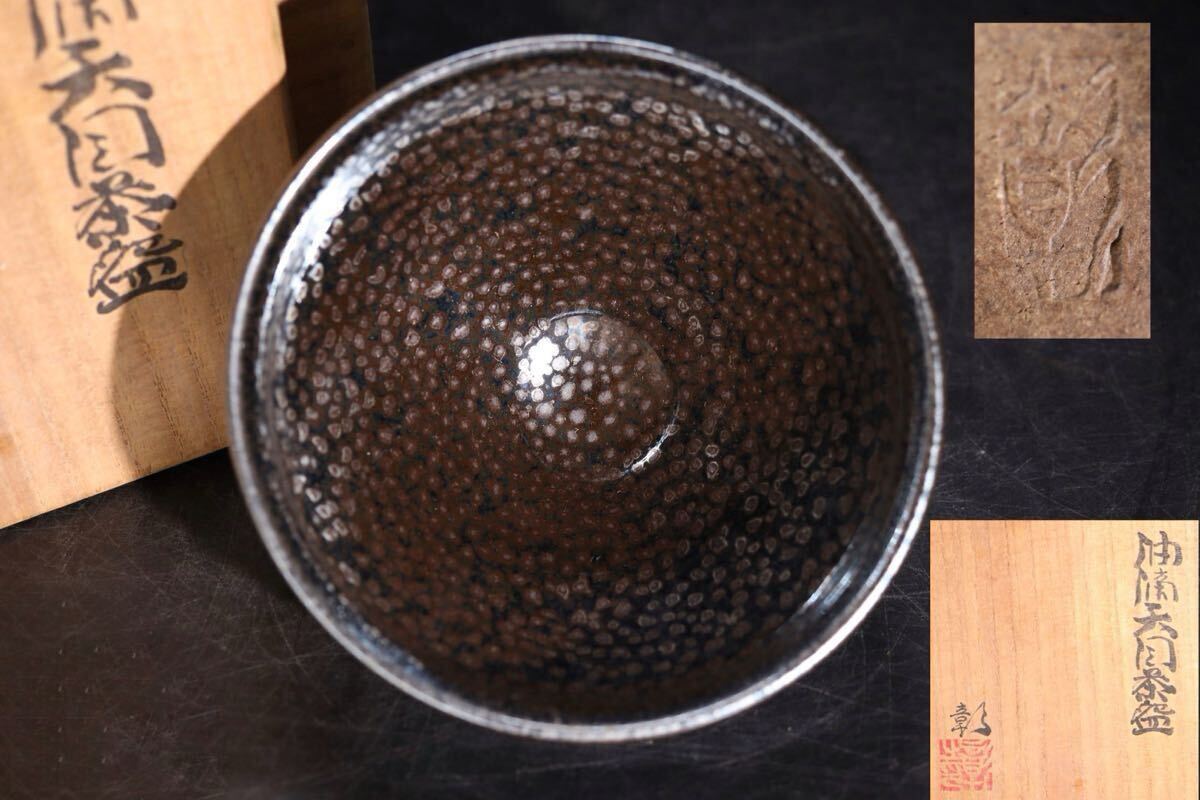 | 伊藤彰 造 油滴天目茶碗 共布 栞 共箱付 / 京焼 油滴 天目茶碗 茶器 煎茶道具 .G2307 |