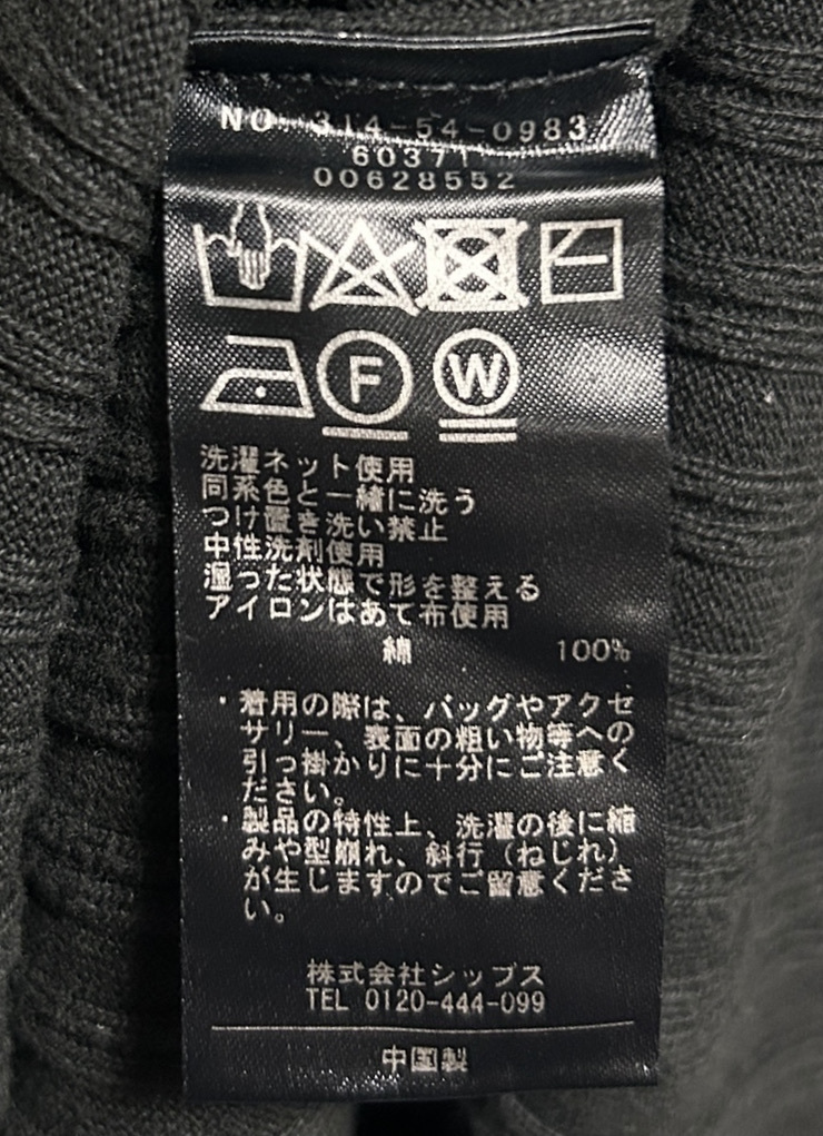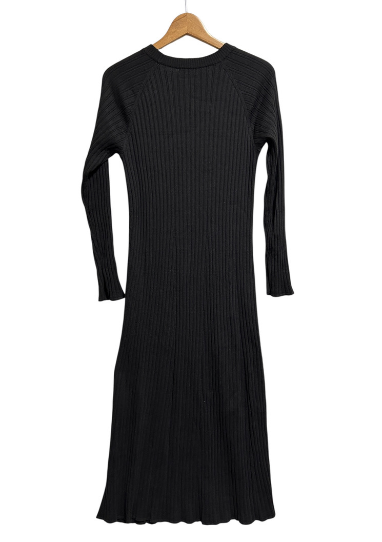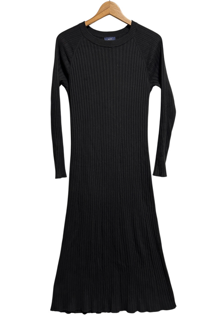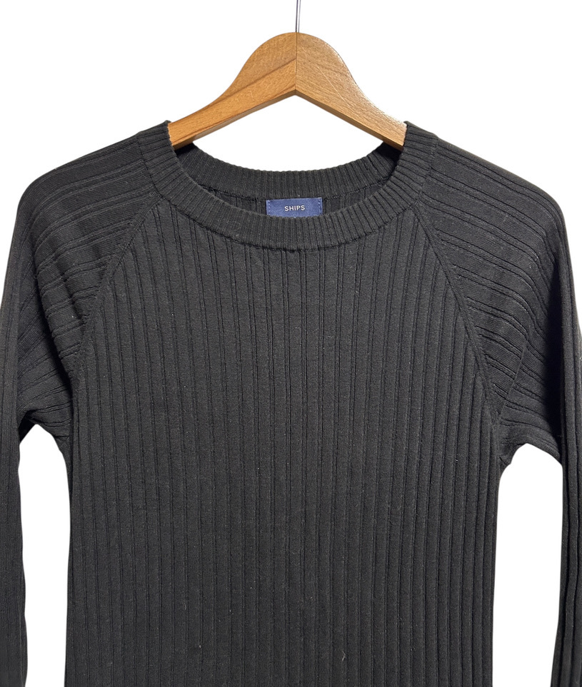★SHIPS シップス オーガニックコットン リブニット ロング ワンピース ONE SIZE F 黒 ブラック