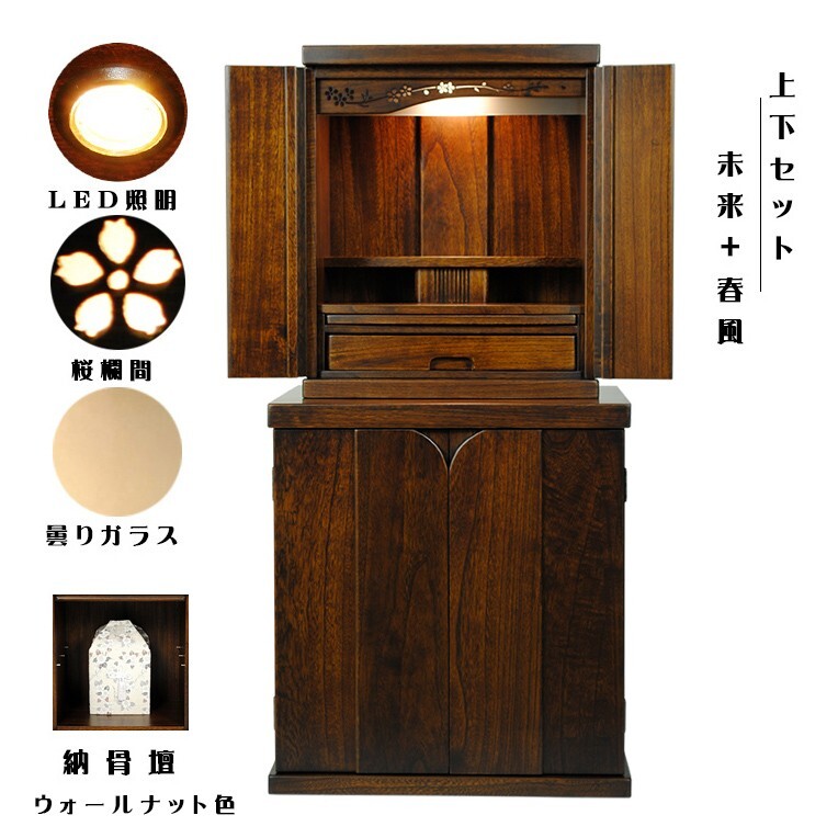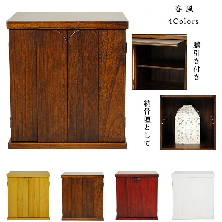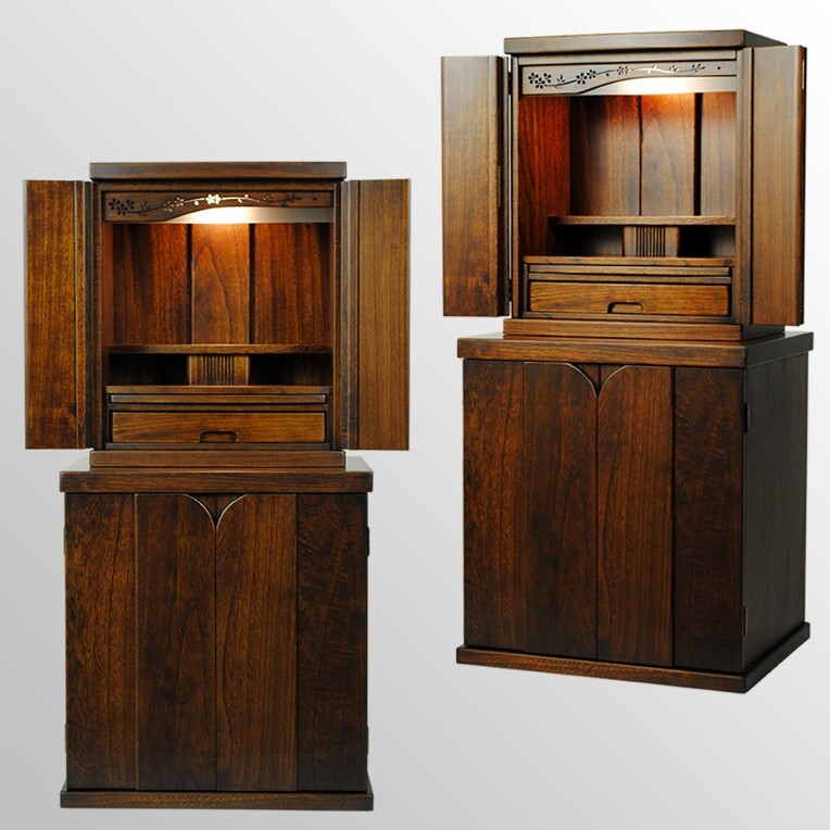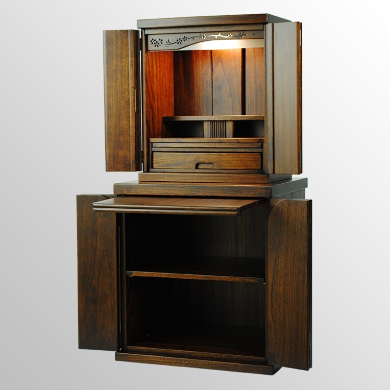 ※仏壇内部でローソクや線香の使用は禁止(火事の原因になります)、備え付けの膳引きをご利用ください