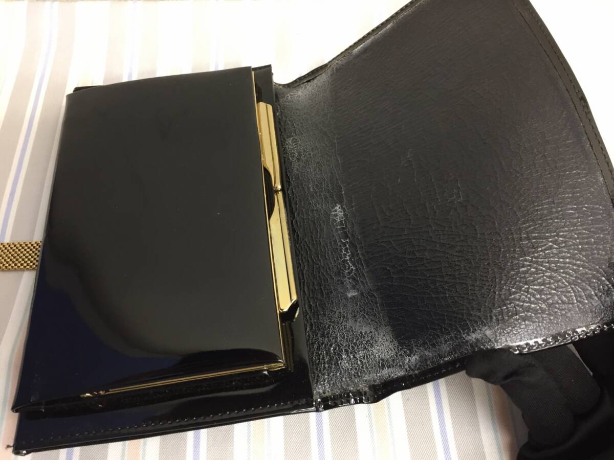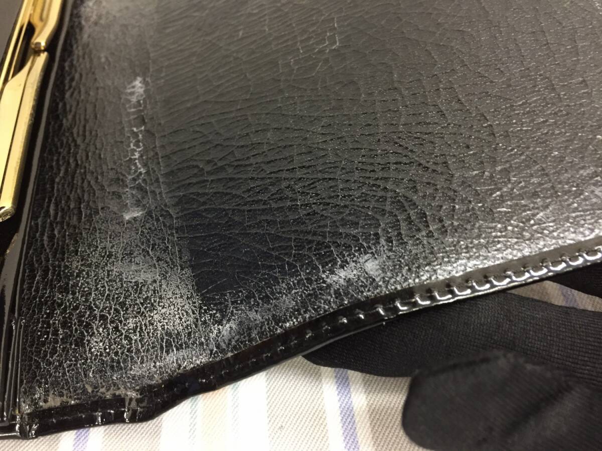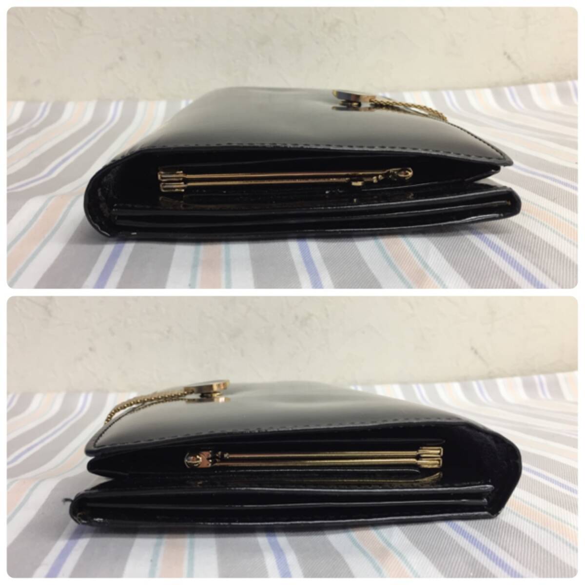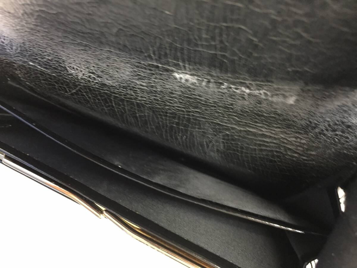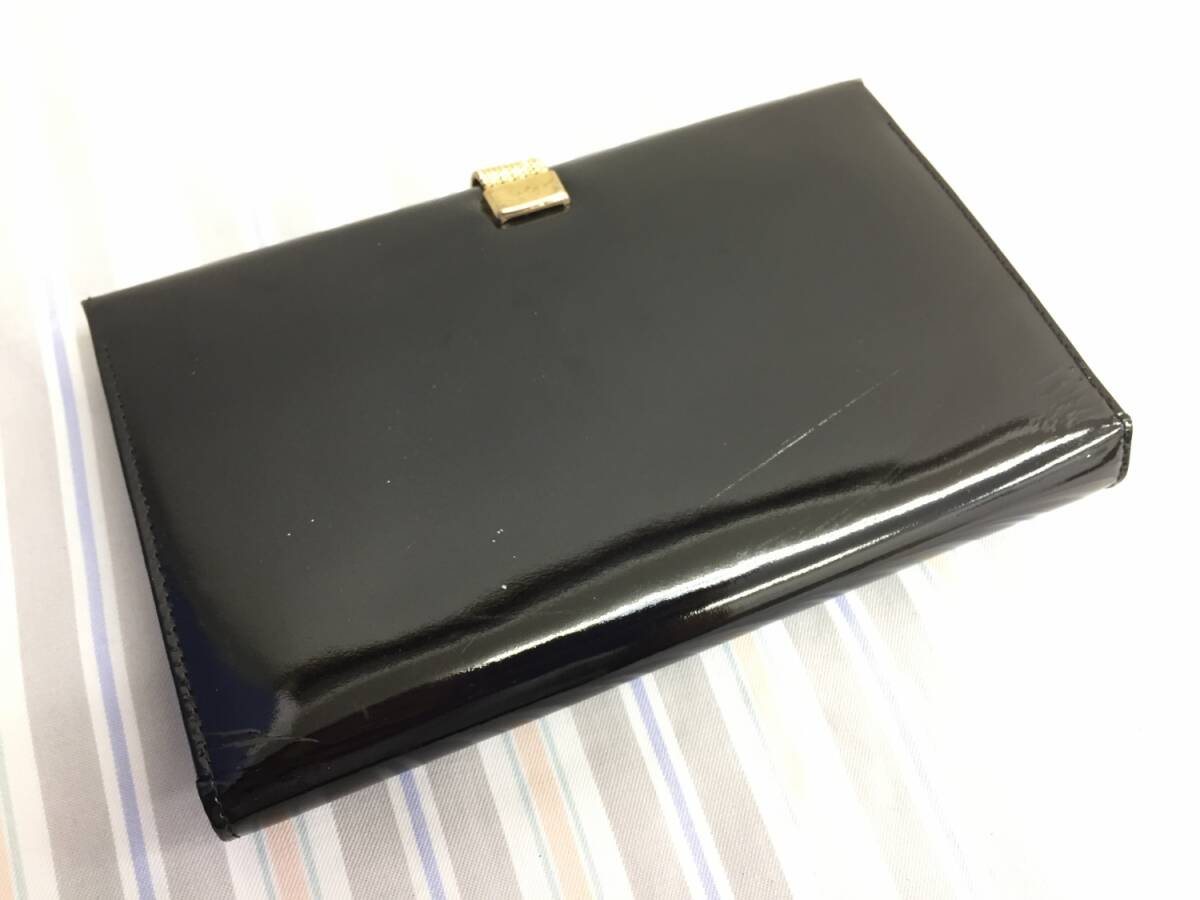 ◎サイズ 縦幅:約 11.5cm 横幅:約 19.5cm 重量:約 268g ※多少誤差は生じると思います。 -------------- ◎状態 外側 擦れ、汚れ、経年劣化:あり 内側 擦れ、汚れ、経年劣化:とてもあり 中古。状態悪い。 表面はエナメルのような光沢ある質感です。 全体的に傷があります。 中を開けると、画像5~画像8のように 白くなっている部分があります。 もしかしてカビでしょうか。白っぽく 手が少し汚れます。 その部分はひび割れのような多数の シワが付いています。 ガマぐちの中も多少汚れています。 致命的な穴や破れは特に無いと思いますが 上記の事を総評しまして 状態は悪い。とお考え下さい。 -------------- 長期保管品していたバッグの出品です。 状態など、ひと通りの確認はしております が、素人によるチェックの為、見落とし などあるかもしれません。気になった 点や特筆すべき点などある場合は、 上記に状態欄に記載しておりますので、 ご確認ください。 ボロボロというわけではなく、使用には 問題ないであろうという物を出品して おりますが、あくまでも中古品であると いうことをご了承ください。