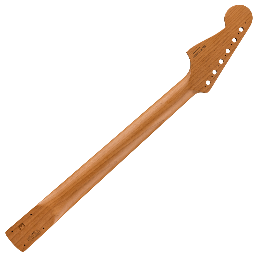 魅力溢れるローステッドメイプルネック。ローステッドネックは湿度変化に強く、ゴージャスでダークなルックスが特徴で、より豊かなサスティンを有し、楽器にユニークなトーンを加えます。この正真正銘Fender製のJazzmasterネックは、メキシコのエンセナダの製造工場で作られています。印象的なパーロイドブロックインレイ、Modern "C"シェイプネック、9.5インチラジアスのメイプル指板、22本のミディアムジャンボフレットを採用し、モダンな演奏体験を提供します。人工骨ナットは、弦のスロットを整える際に正確な間隔を確保するためのパイロットグルーブが予め付けられています。