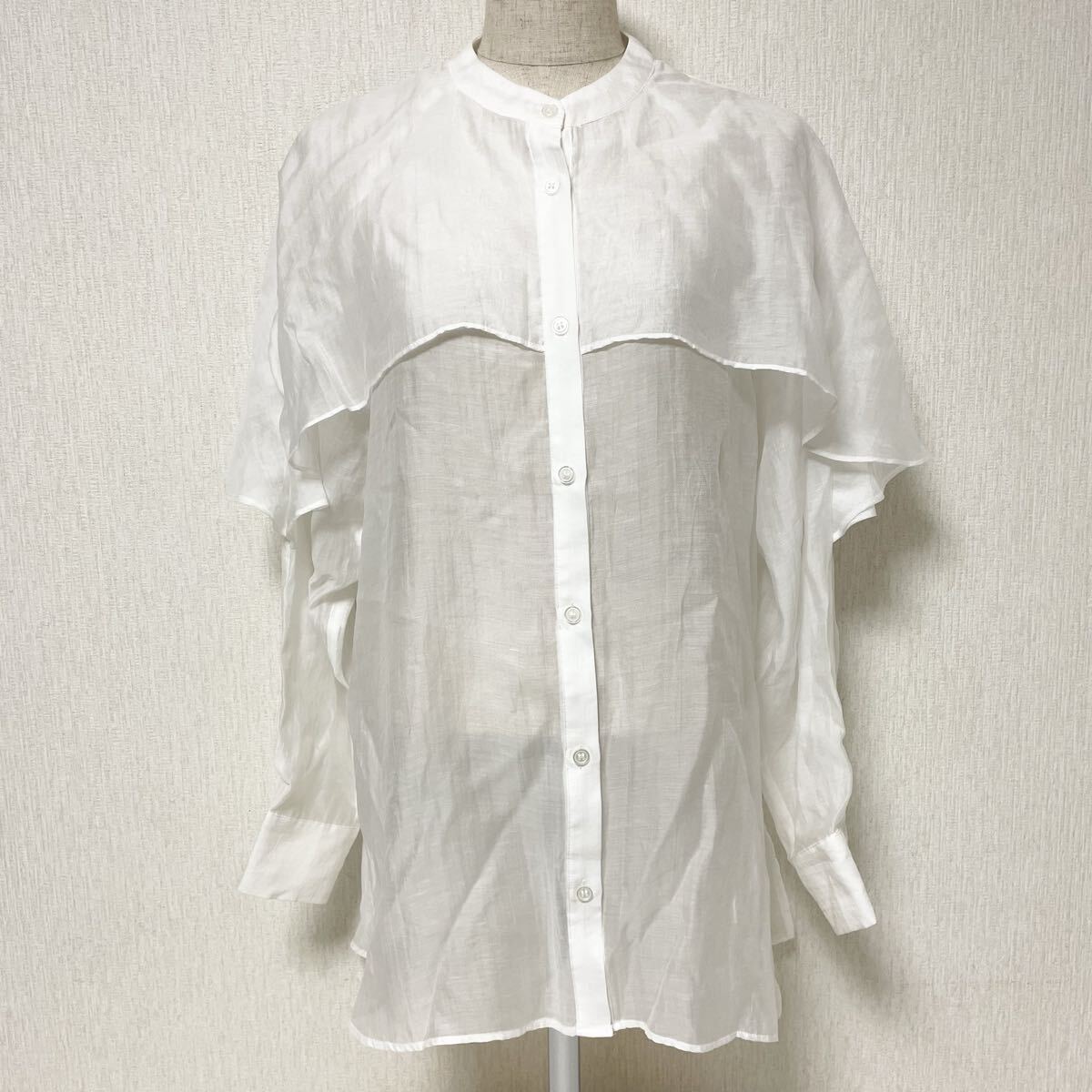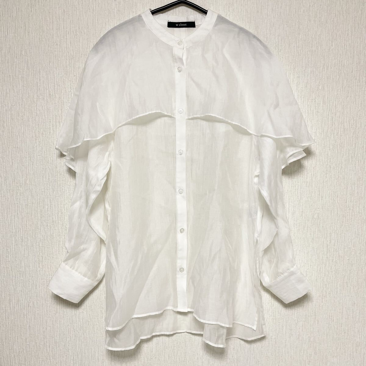 即決☆w closet ダブルクローゼット シアー フリル シャツ ブラウス ホワイト 長袖