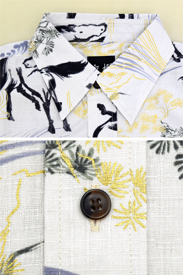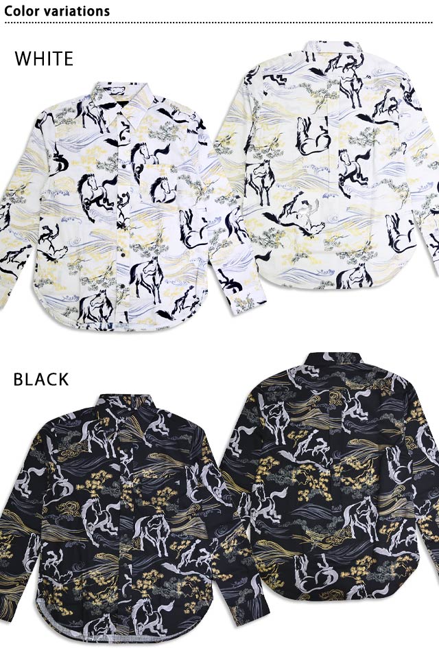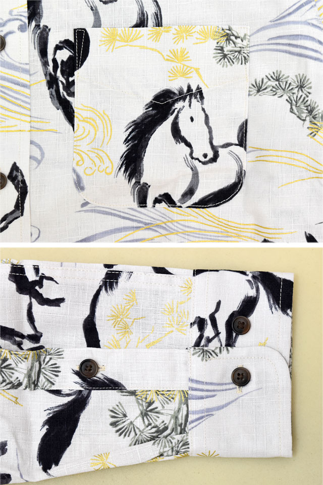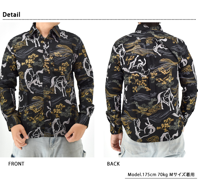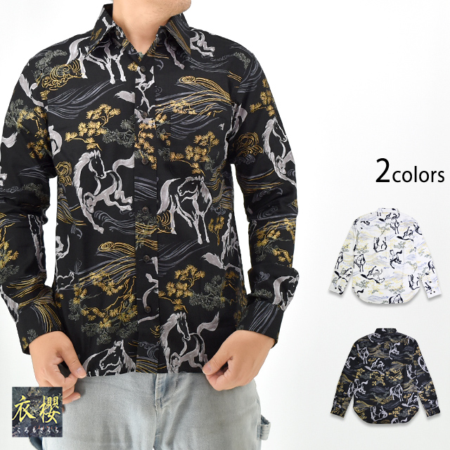| 長袖レギュラーカラーシャツ「金彩墨絵馬」◆衣櫻 KSK-M09752 | |||||||||||||||||||||||||