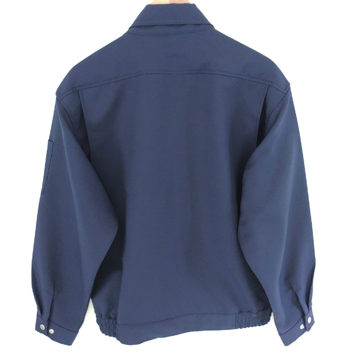 フロント両サイドにスラッシュポケット・胸元にファスナーポケットとフラップポケット・左袖にペン差しの付いた、スナップボタン+ZIP開閉フルオープン仕様。袖口はスナップボタンで調整可能。密でしっかりとした、着やすく丈夫な生地感。裾はサイドにゴム入りで風の進入を防ぐ、安心感のある作りです。