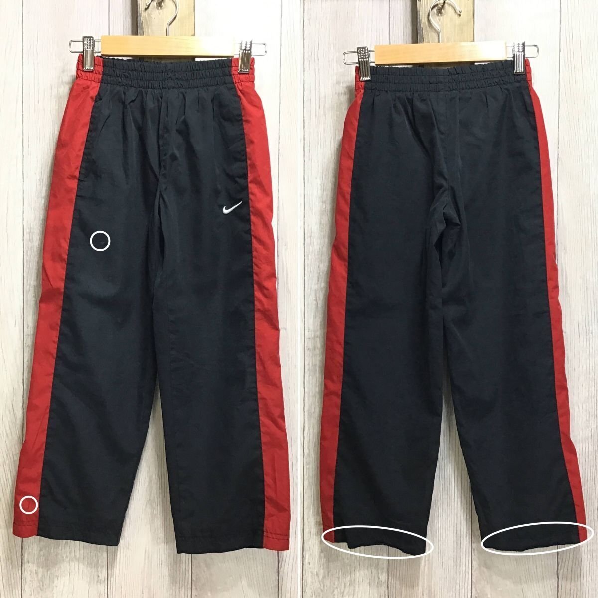 合計落札金額¥8,000円以上で、、、 送料無料!! ※こちらからの[合計支払い金額通知]をご確認の上、お支払い下さい♪ -------------------------------- 【 NIKE ナイキ 】 刺繍ロゴ メッシュライナー ウィンドブレーカーパンツ ● USA輸入・正規品 ● ● 海外サイズ規格 ● ● ポケット( 左右:有・ヒップ:無 )● -------------------------------------------------------- ◆ ◆ 商品説明 ◆ ◆ 右裾にダメージ・腿に白い汚れ、 背面側 両裾にダメージ・ほつれがあります。 ★NIKE ナイキ★ 人気の黒×赤カラー&サイドラインデザイン☆ メッシュライナー付きで着用時の蒸れを軽減し、快適な履き心地 ♪ 人気のアイテムですので是非この機会に! -------------------------------------------------------- ◆◆サイズ◆◆ ユース S 130 ※実寸をご確認の上、ご検討をお願いいたします。 ウエスト:25cm 股上:21cm 股下:53cm ワタリ幅:24cm 裾幅:18cm ※全て平置き時のサイズです。 素人採寸の為、多少の誤差はご了承いただけますよう、お願いいたします。 -------------------------------------------------------- ◆ ◆ 素材表記 ◆ ◆ ポリエステル:100% ----------------- | |||||