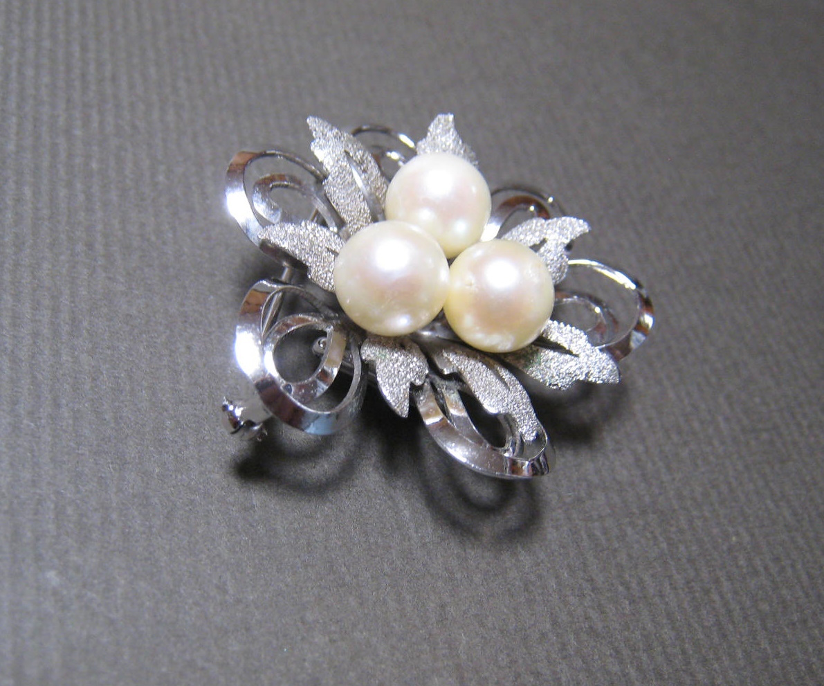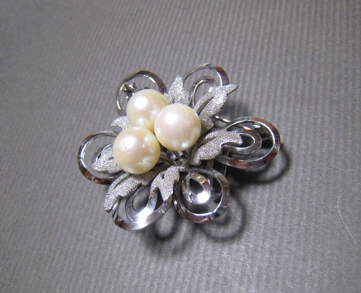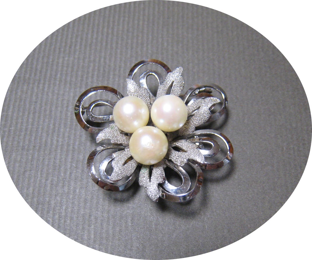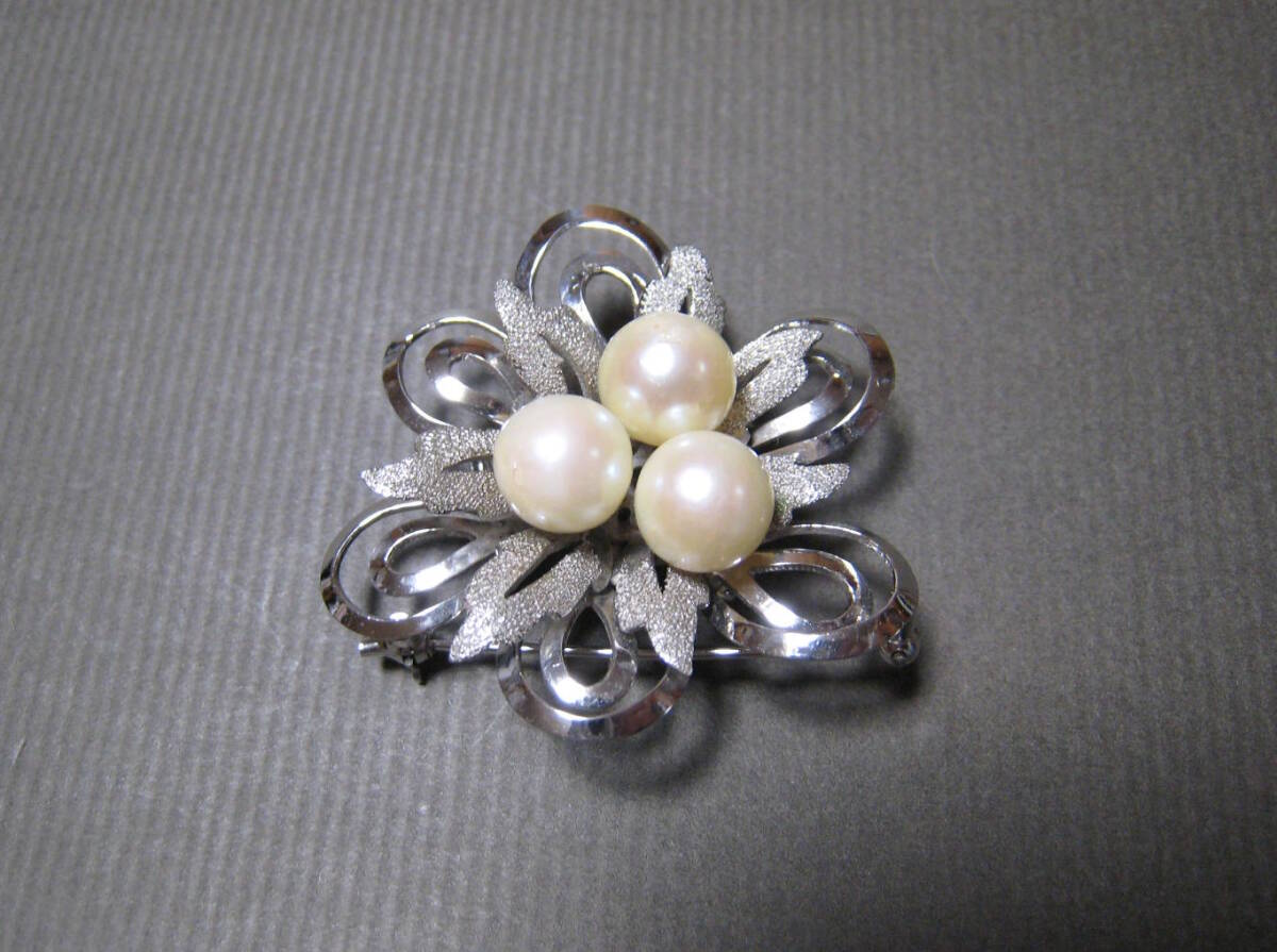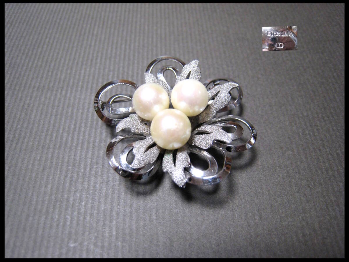 花彫金(sterling刻印)に大粒の真珠(と思います。)をあしらった美しい帯留(ブローチ兼用)です。
