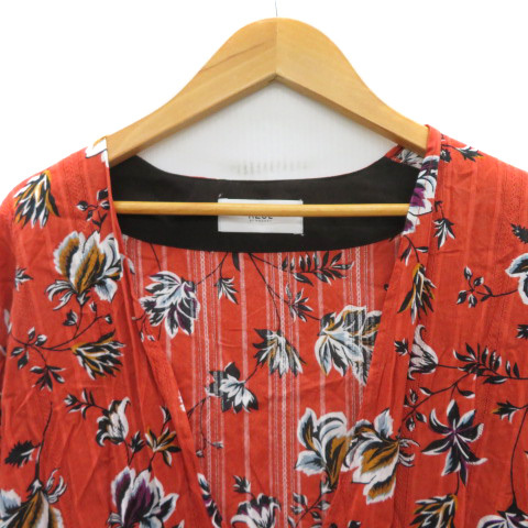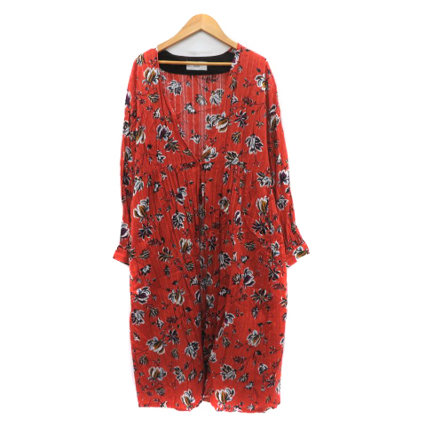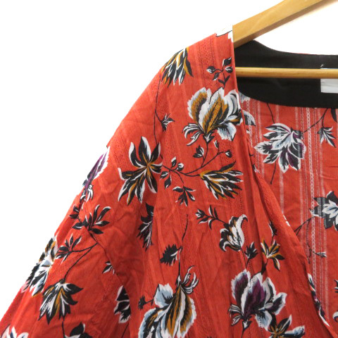 アズールバイマウジー AZUL by moussy ガーディガン ガウン ロング丈 前開き 花柄 S マルチカラー レッドブラウン /YK16 レディース