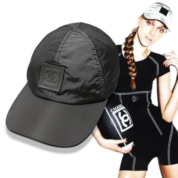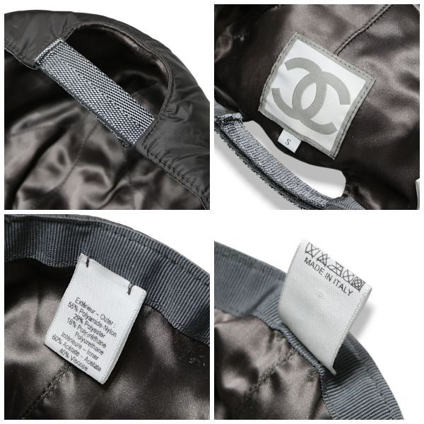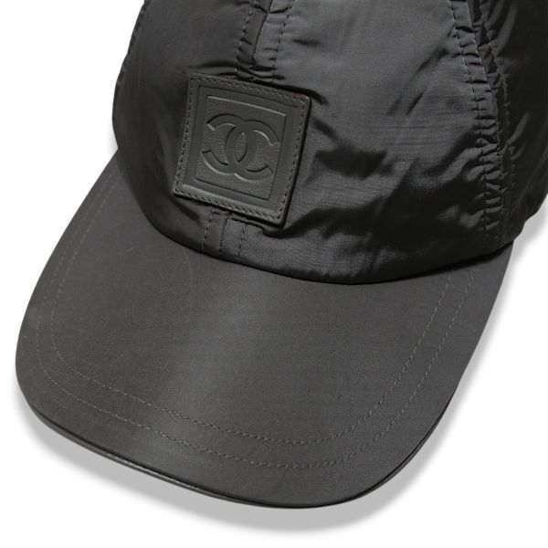 良品 正規品 CHANEL シャネル スポーツライン ココマーク CC ロゴ ナイロン キャップ 帽子 S グレー イタリア製