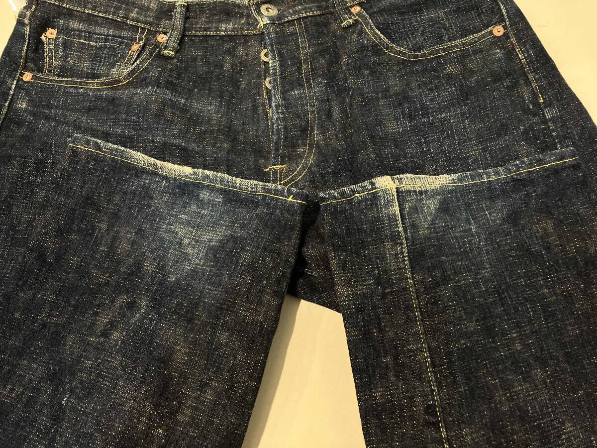 | 全体的に素材特有の色落ちがございます。裾に若干のダメージがございます。 |