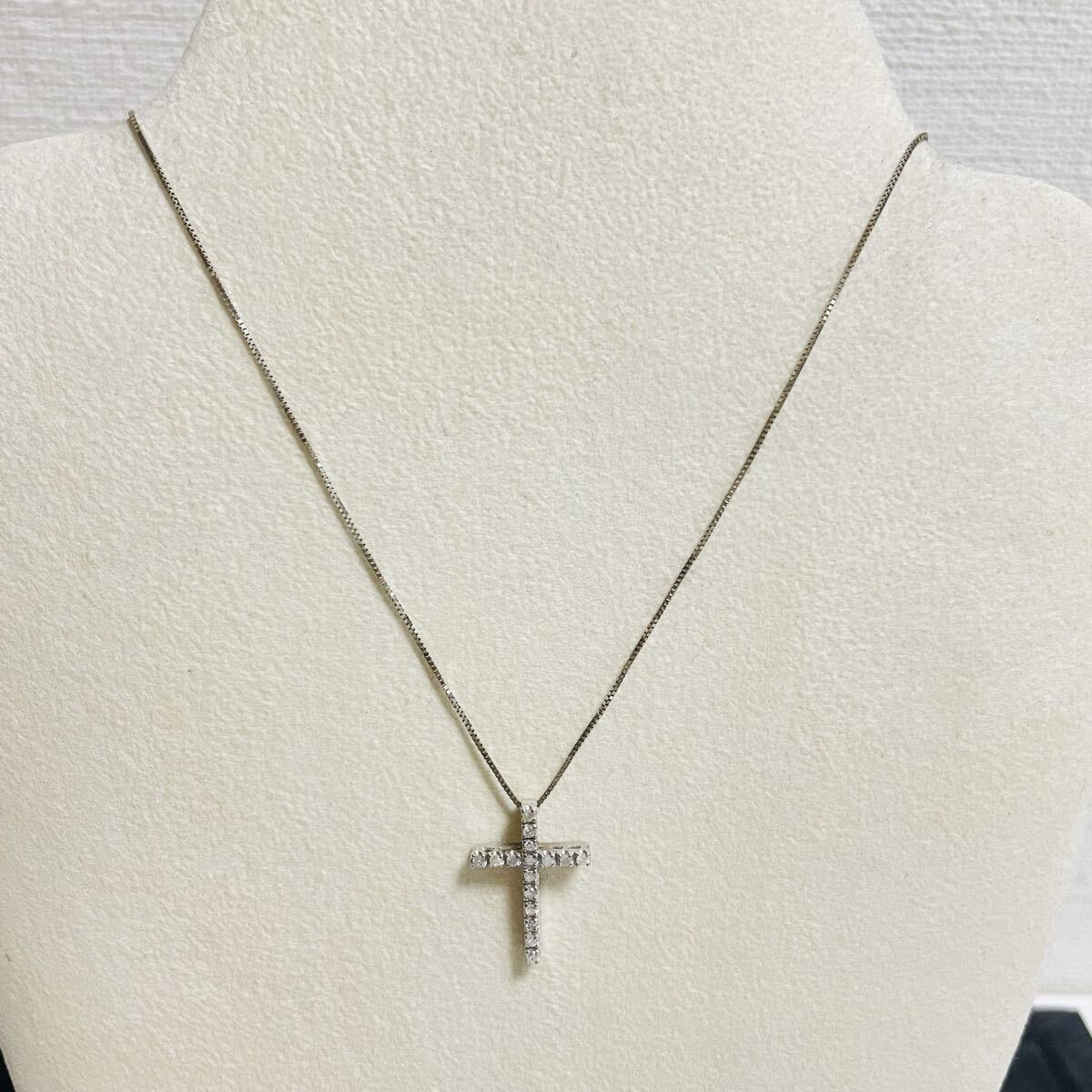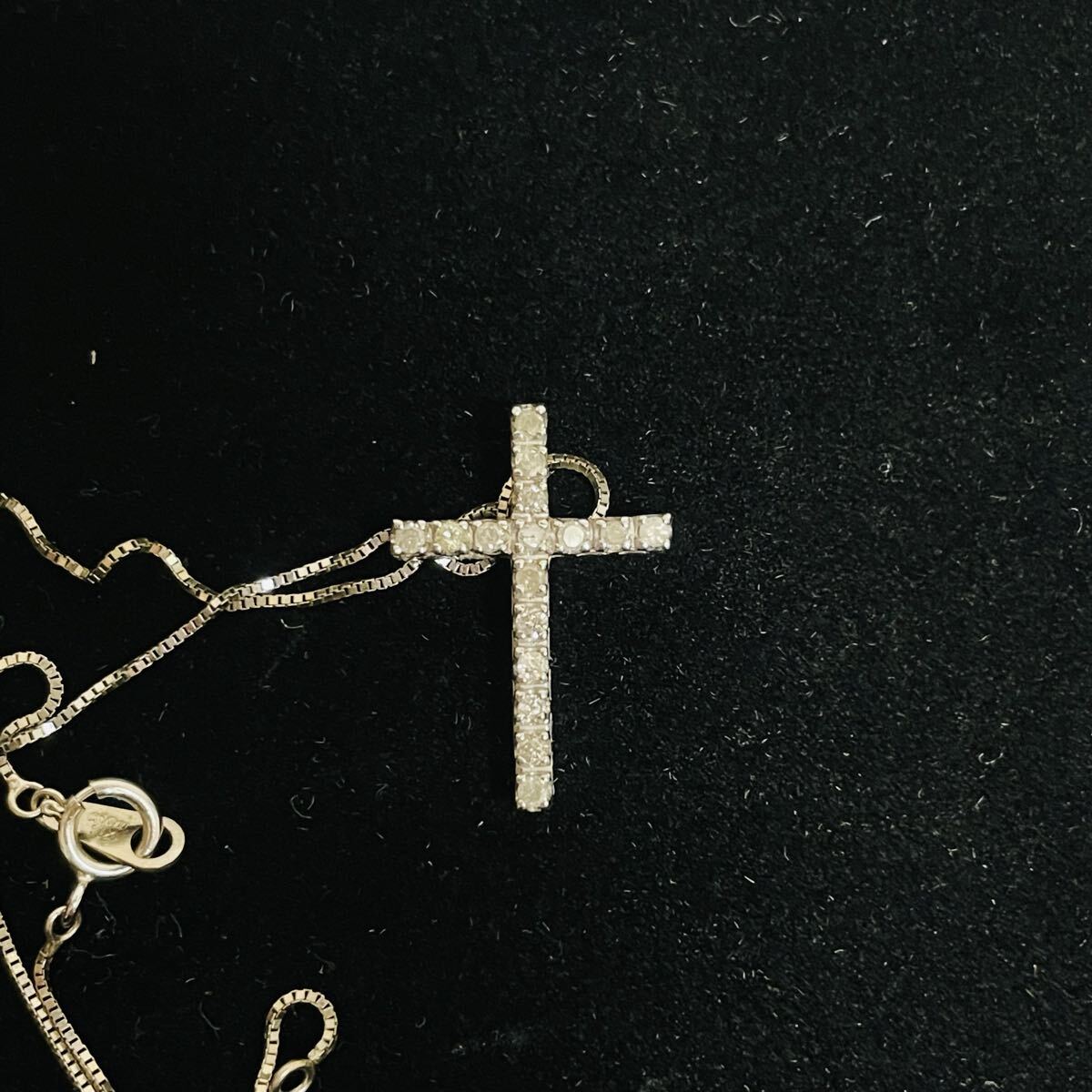 A202 ネックレス 石付き 十字架 刻印あり K14 WG 希少品 長さ約20 重さ約1.91 ファッション ホワイトゴールドアクセサリー