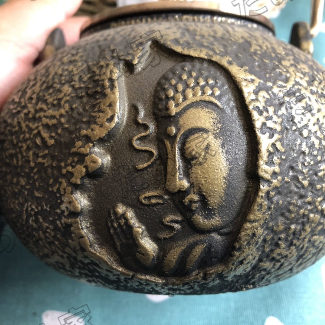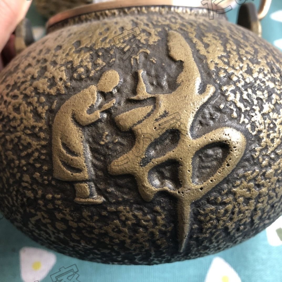 鉄器 利器 鉄を作るん 急須 南部鉄器シリーズ うろこ壺 鉄を作るん レリーフ 鋳鉄 ★1.2L 未使用 童子が仏様に聞き