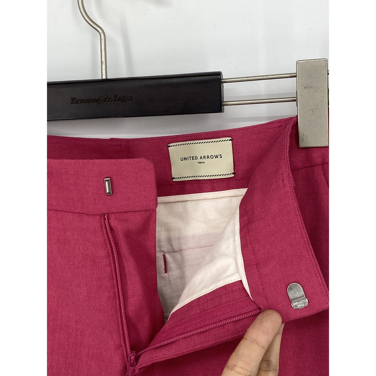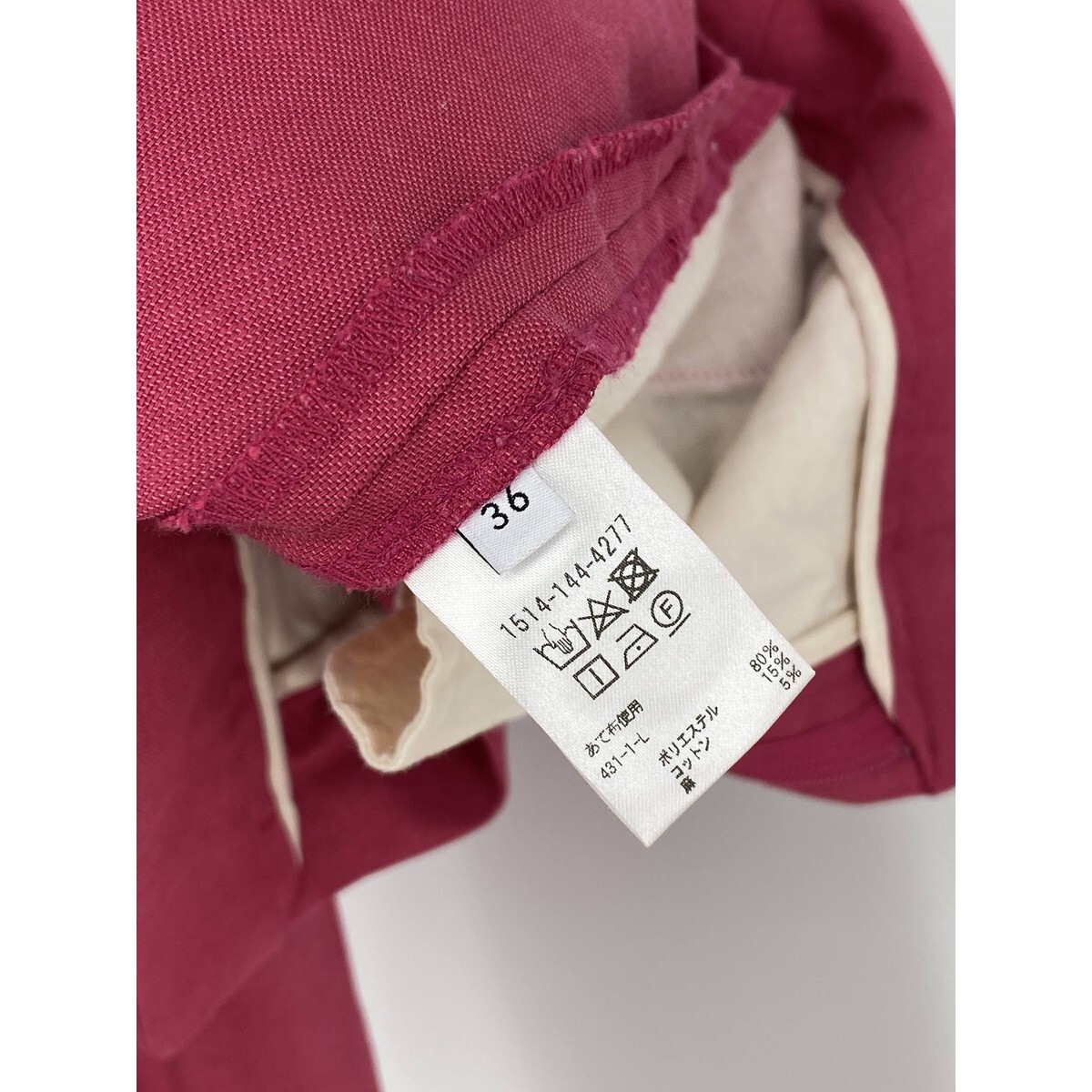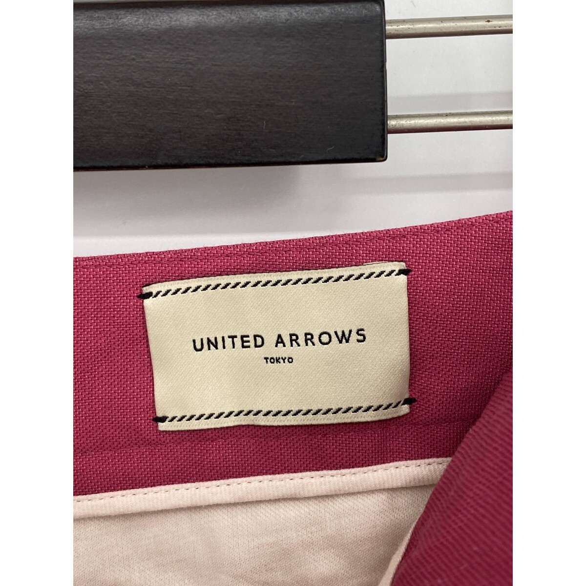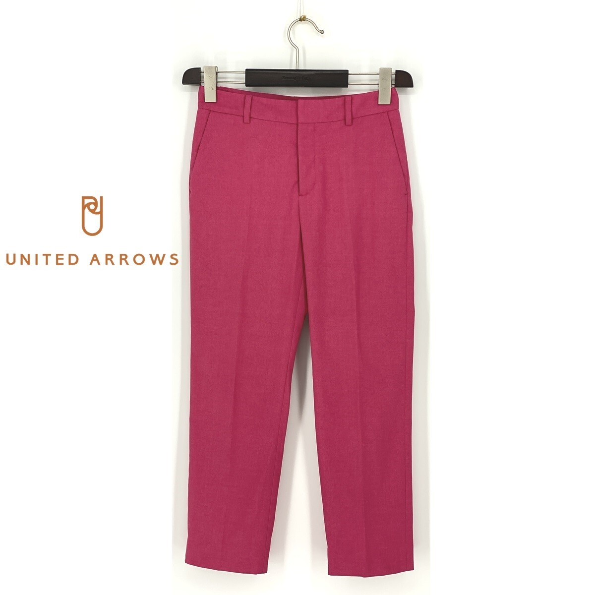 B0434/極美品 UNITED ARROWS ユナイテッドアローズ コットン リネン ストレッチ テーパード スラックス パンツ 36 S程 ピンク レディース