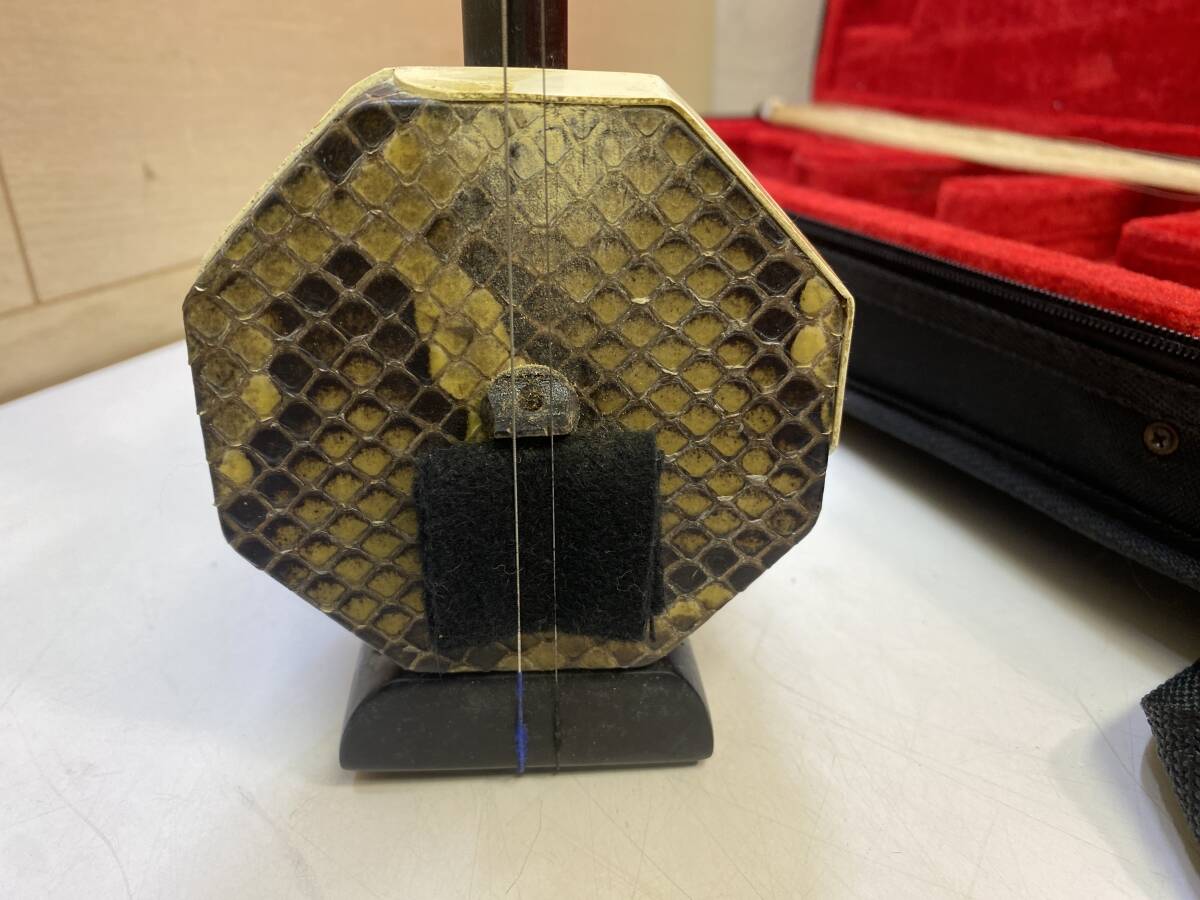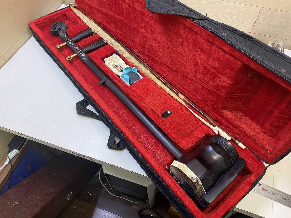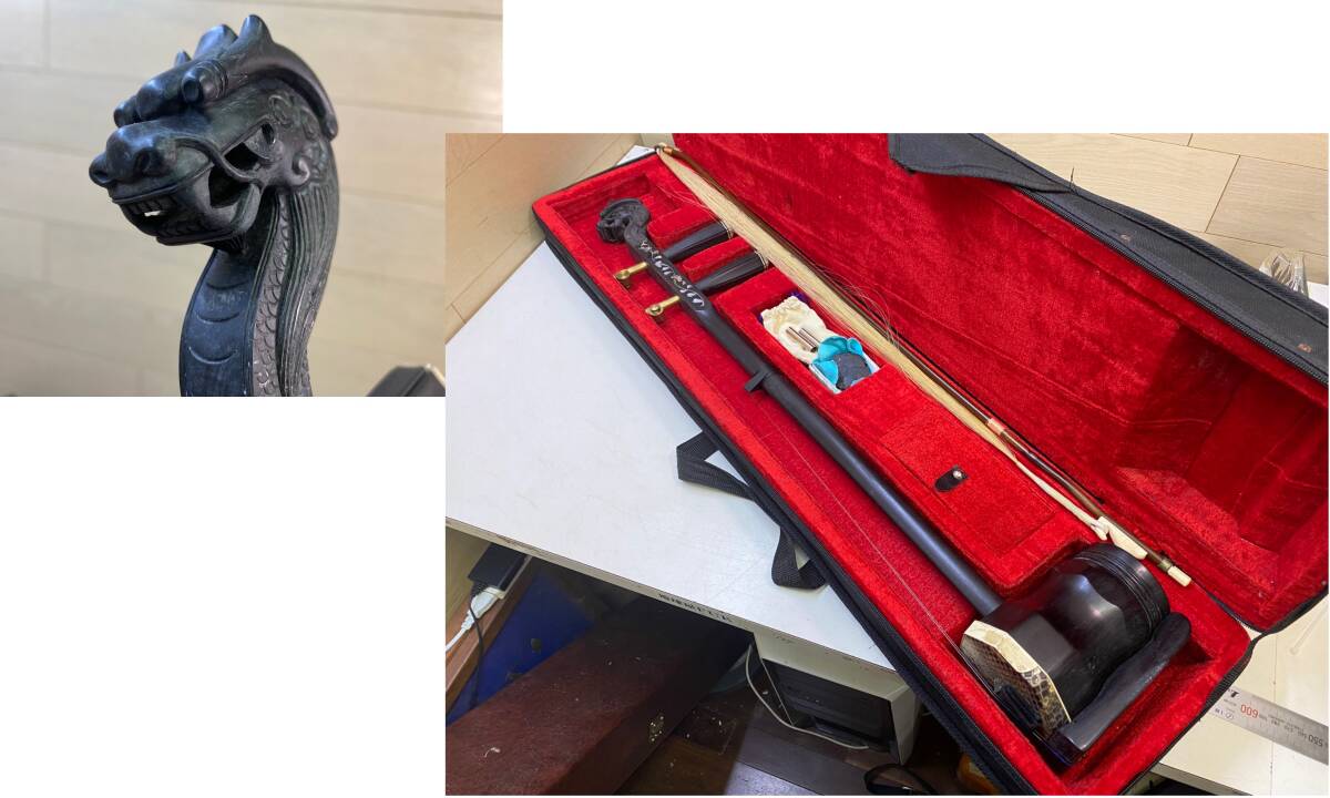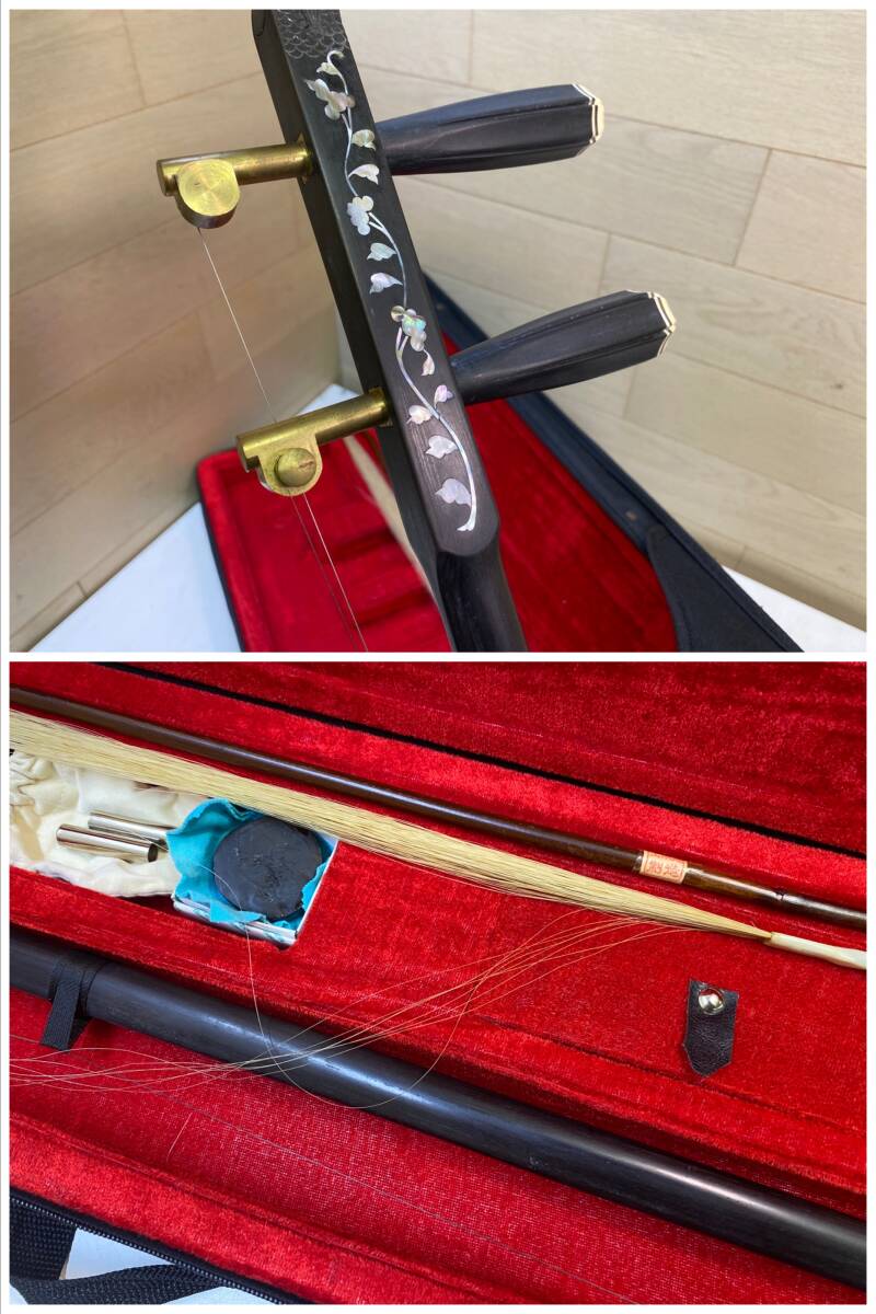 【中国/伝統楽器】二胡 螺鈿細工 蛇皮 龍頭彫刻 弦楽器 民族楽器 現状品 | |||