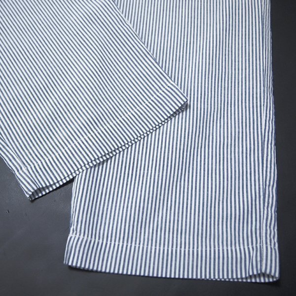 【Sheltie Club】 〈湘南の海〉をテーマとしたブランドコンセプトに沿って、マリンテイストを味付けしたシンプルなスタイルを信条とし、ラフで、気取らず、気張らない、ややゆったりとした着こなしを提案します。 サラッとしたドライな肌触りで、通気性、吸水速乾性に優れたシアサッカー素材のパンツ。 シアサッカー独特の凹凸感により肌離れが良く、春夏シーズンに最適な爽やかさが感じられます。 着心地や肌触りにこだわってコットン100%の生地を使用し、ナチュラルでソフトな風合いが魅力です。 軽くて清涼感のある爽快な穿き心地に、細すぎない適度なリラックス感でストレスフリーな1枚。 ご自宅で洗濯が可能なウォッシャブル製品なので、イージーケア性が高いのも嬉しいポイントです。 ・ノータック ・ジッパーフライ ・テーパードシルエット |
