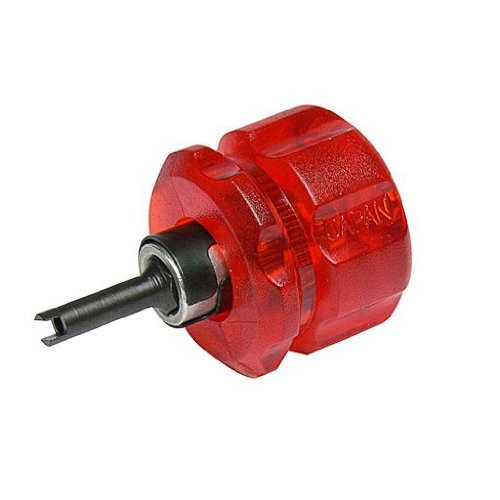 タイヤのバルブコア(ムシ)の脱着に使用するイヤバルブコアツールです。 単車に便利なスタビータイプです。 また、ビット(先端部)は差込式。 全長 42mm シャフト長さ 15mm シャフト径 φ4mm 1/4六角のビットを取り付けて超スタビードライバーとしても使用可能です。