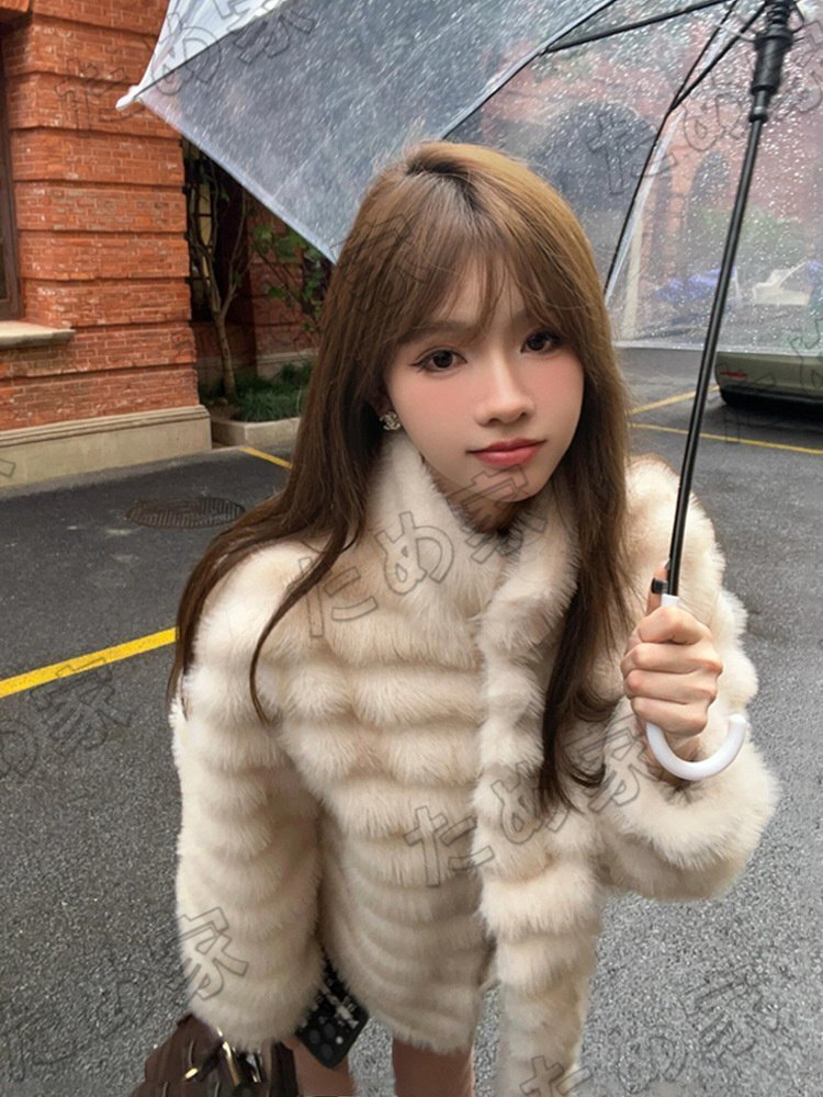 【新作 高級感】エコ毛皮 2024年 ファッション 韓国系 狐のモモ オーバーコート 女 冬 襟を立て ショート丈