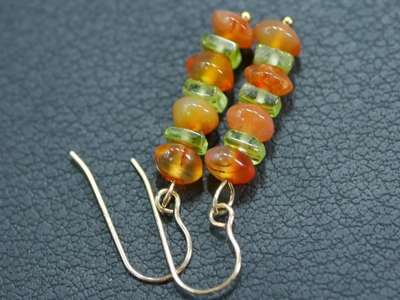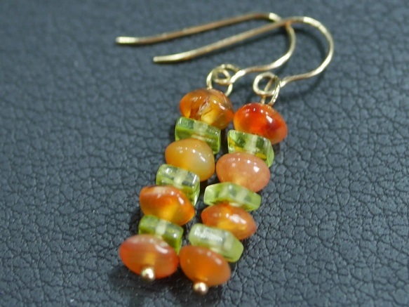 【14KGF】ペリドット×カーネリアンのピアス|軽やかに彩る天然石のコンビ 863