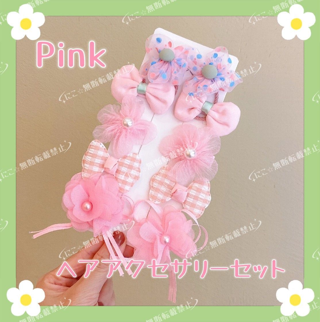 フラワー ヘアアクセサリー 10点セット ヘアピン ヘアゴム 髪飾り 髪留め ヘアアレンジ オシャレ 可愛い ピンク