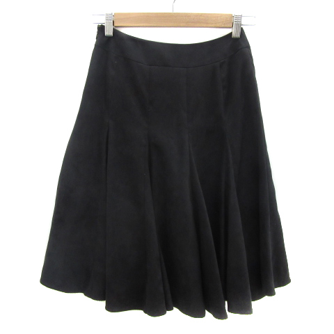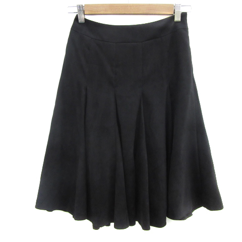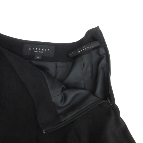 マテリア MATERIA プリーツスカート ミモレ丈 無地 スエード調 36 S 黒 ブラック /YS8 レディース