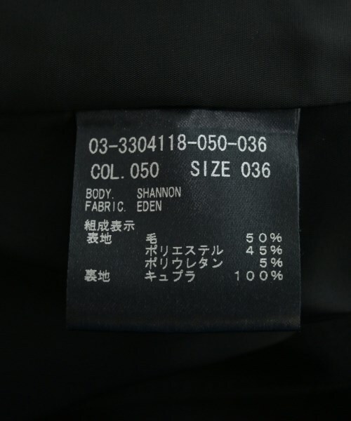 毛50%、ポリエステル45%、ポリウレタン5%、(裏地)キュプラ100% |