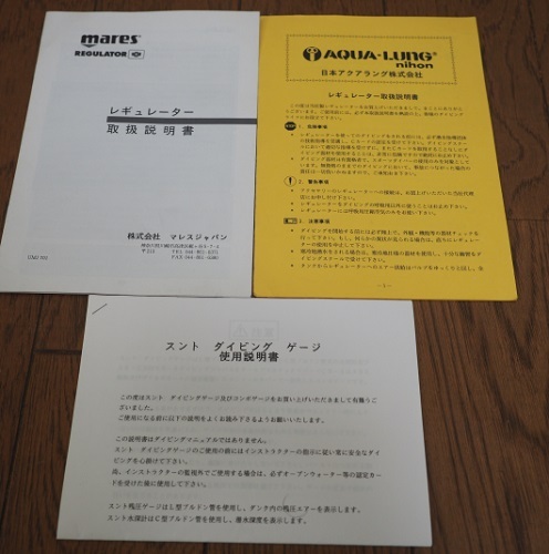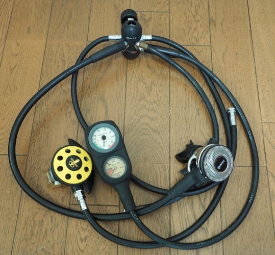 ダイビング機材、レギュレータはMares MR16-J RUBY、オクトパスはAQUALUNG、ゲージはSUUNTO CB-3のセットになります。