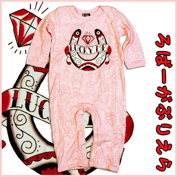 【送料無料】ベビー服【ロンパース】LUCKY ME ピンク【6~12】