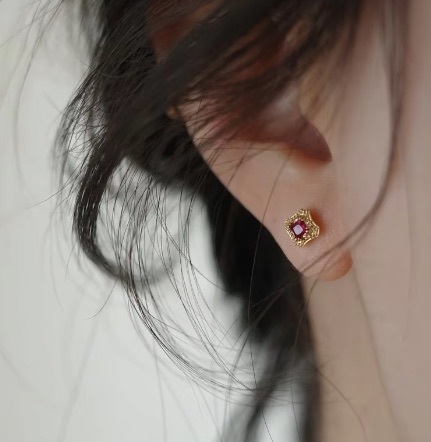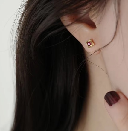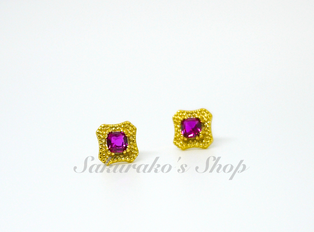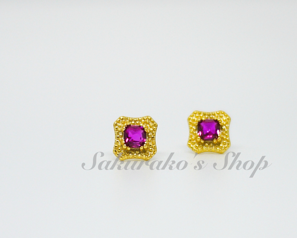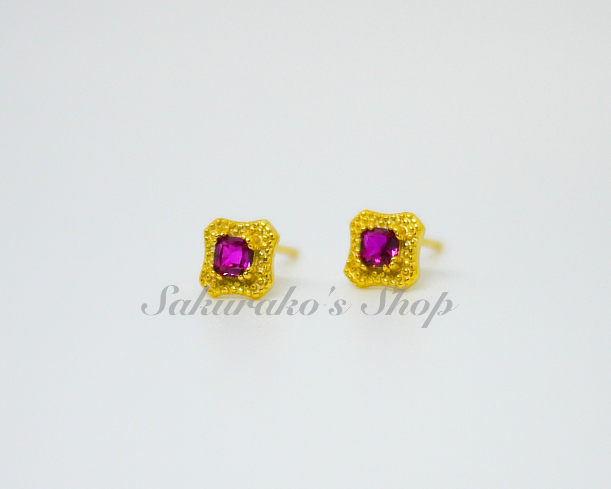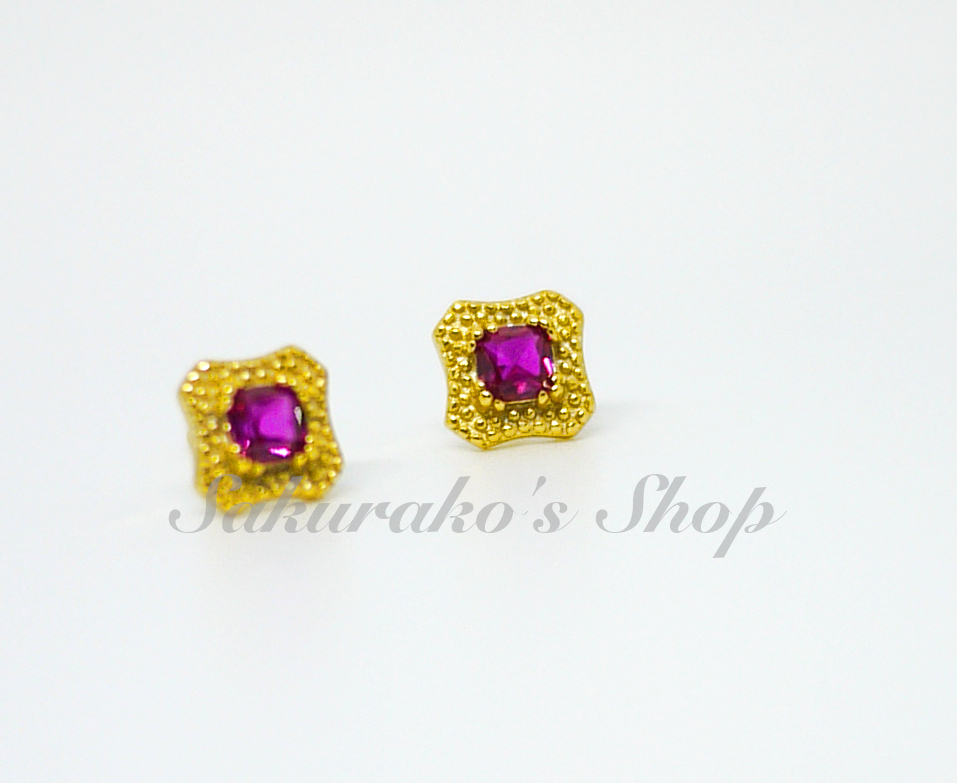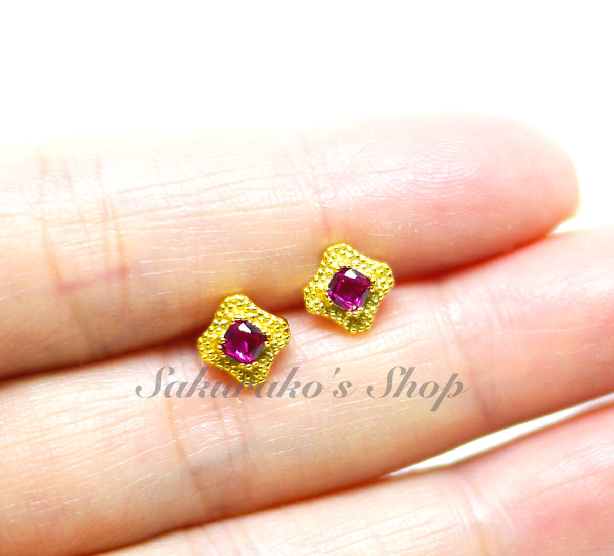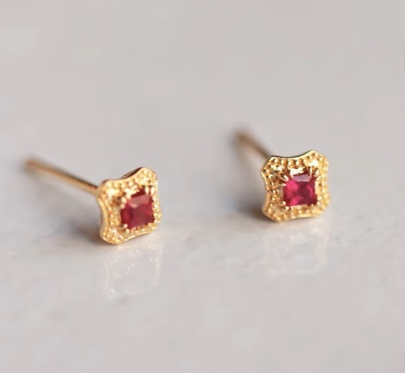 新品 スクエアカットのルビーのクラシカルなピアス 925シルバー k14gp