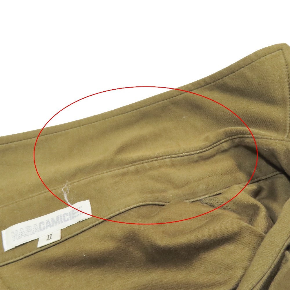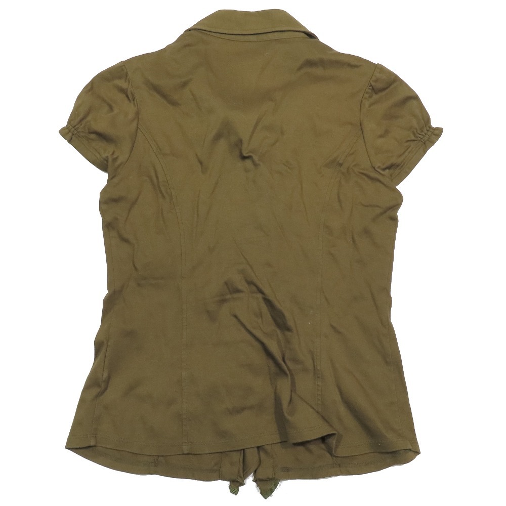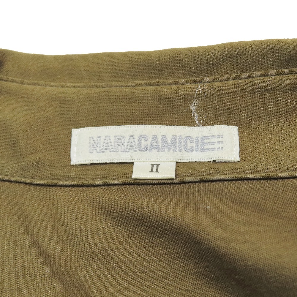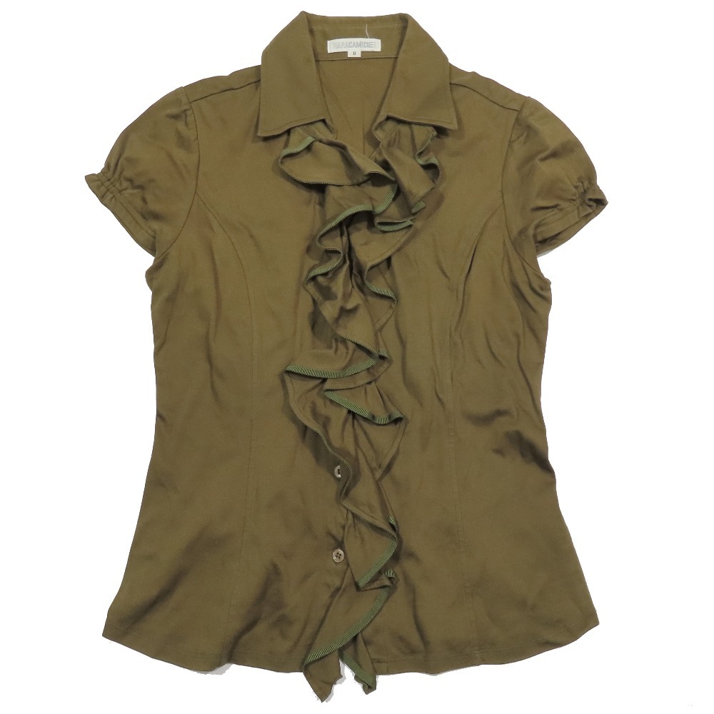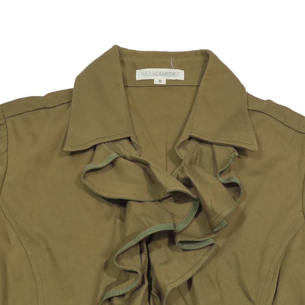 美品 NARACAMICIE ナラカミーチェ ブラウス シャツ 半袖 フリル オープンカラー カットソー コットン 2 カーキ