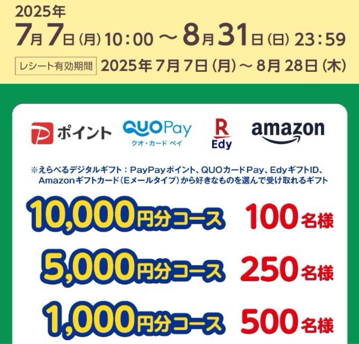 えらべるデジタルギフト 最大10,000円分が当たる! ロッテ サマーキャンペーン レシート応募
