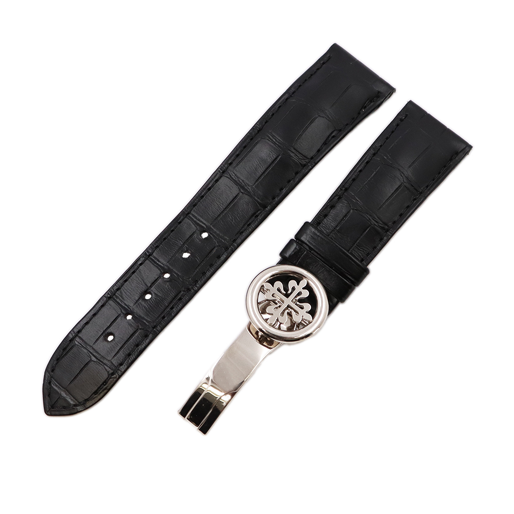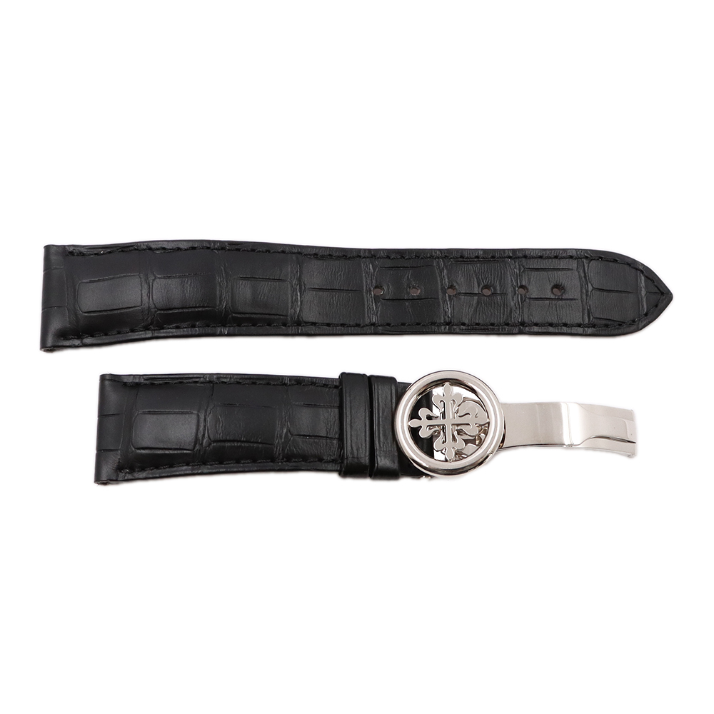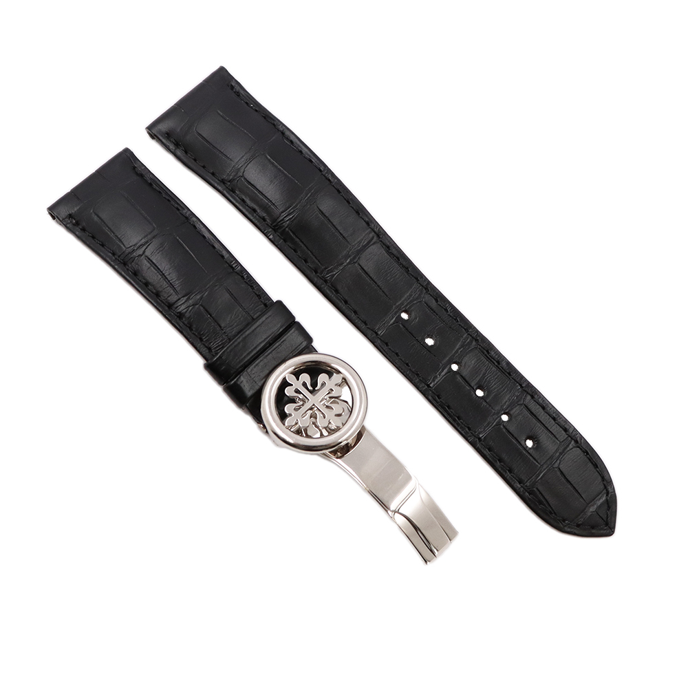 パテックフィリップ(PATEK PHILIPPE) ラグ幅約21mm ブラック アリゲーター ホワイトゴールドDバックル付き ベルト 純正品【中古品】