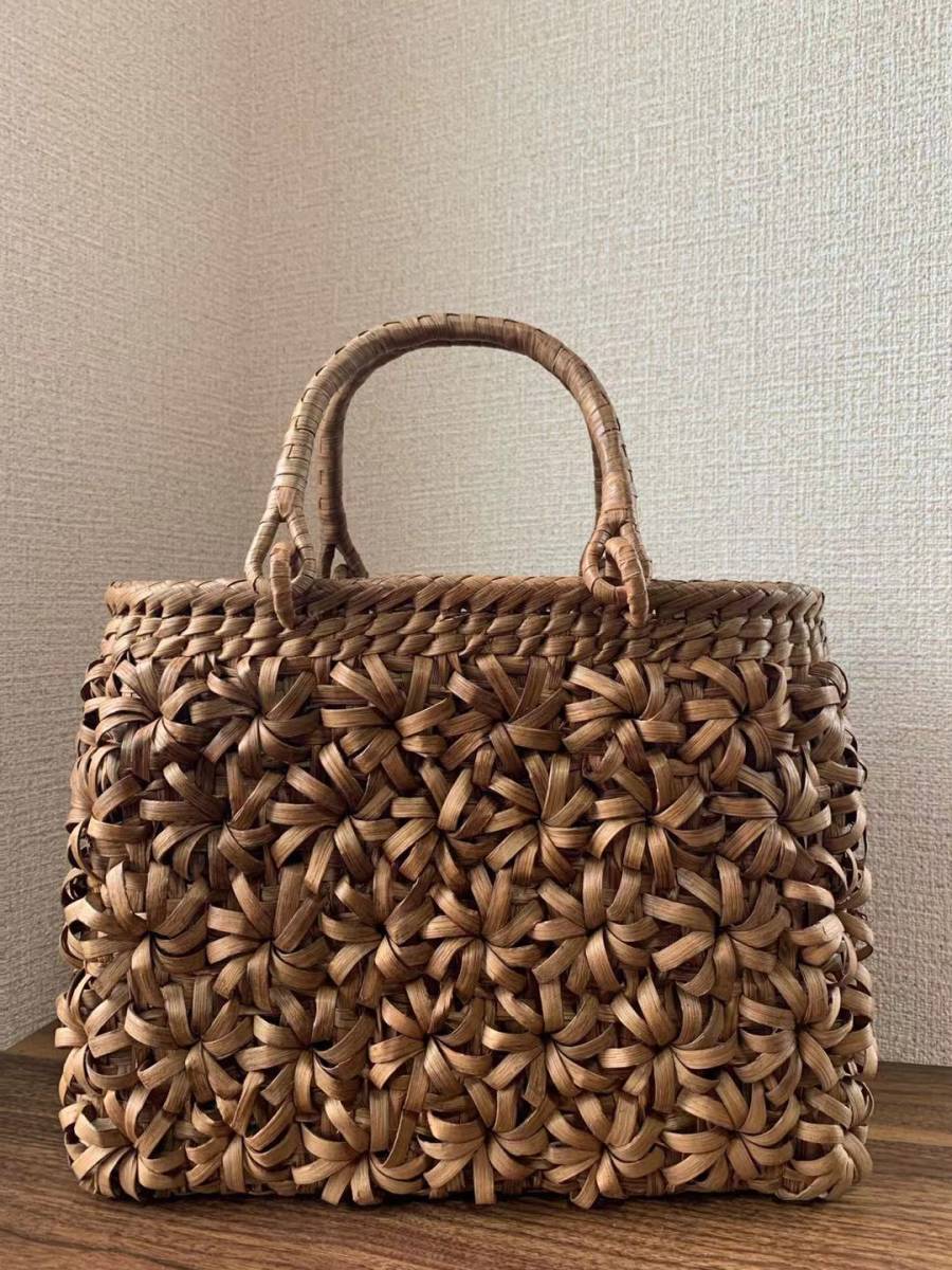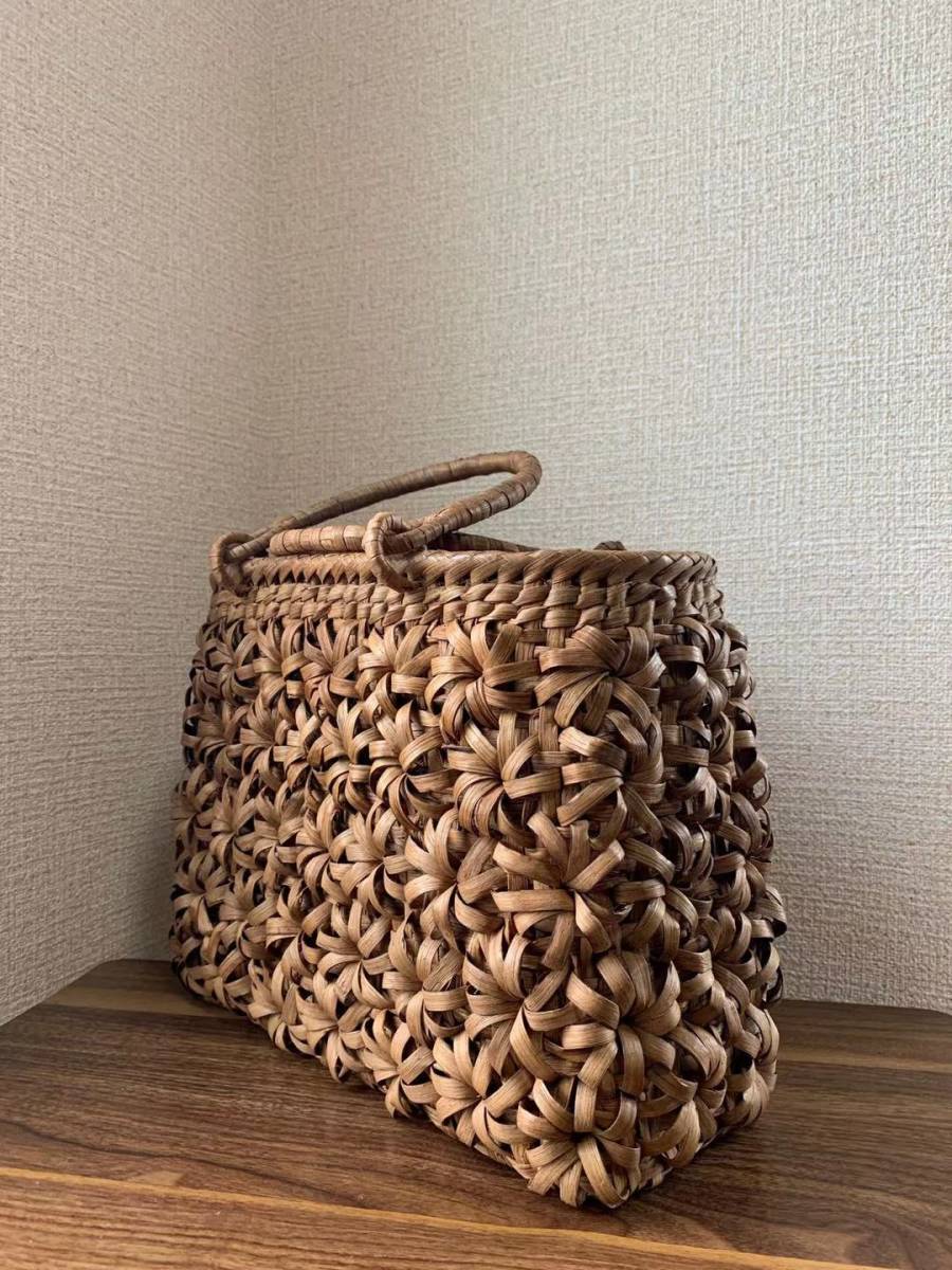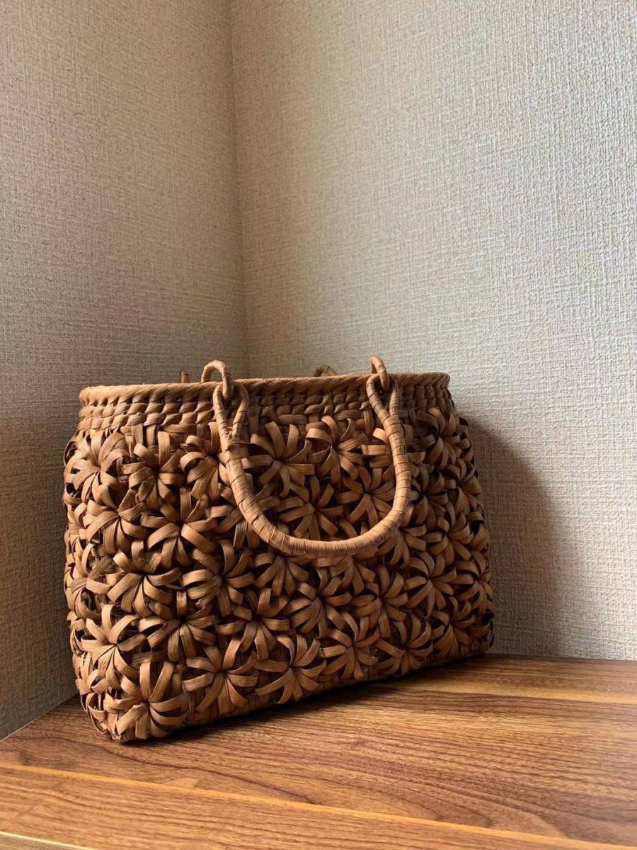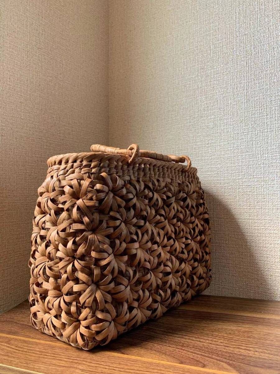 山葡萄かごバッグ 手作り カゴバッグ 内布付き 立体花
