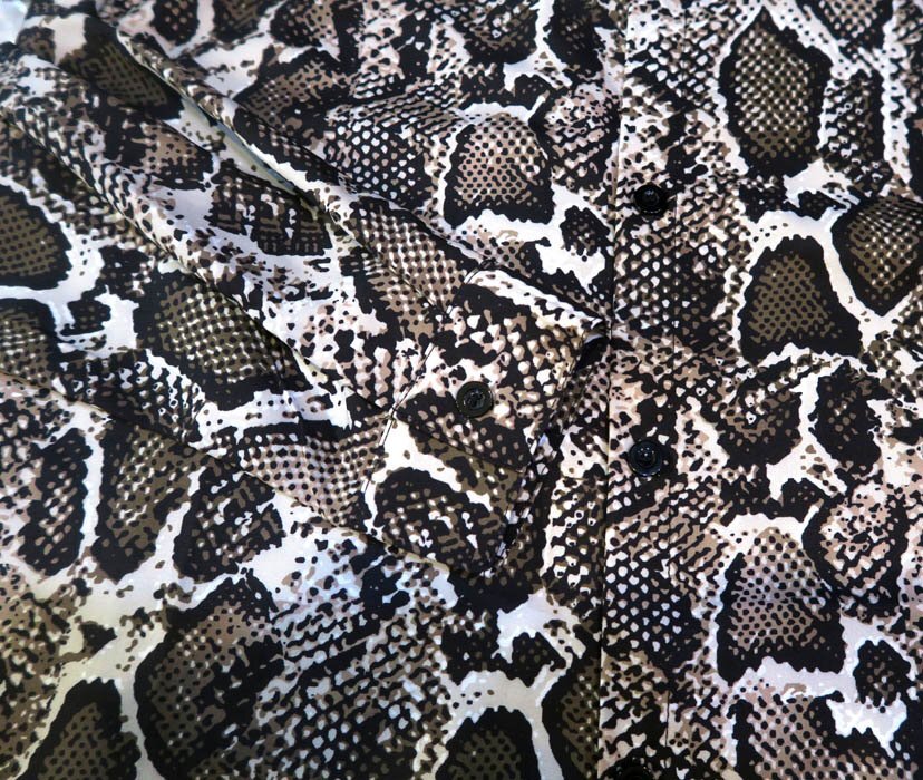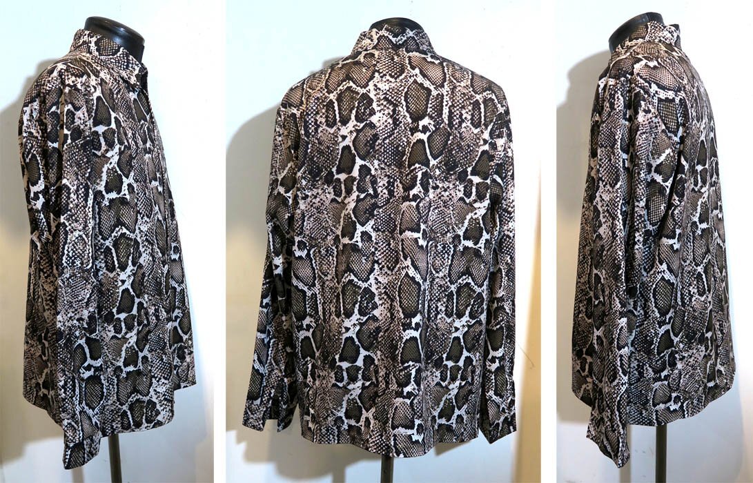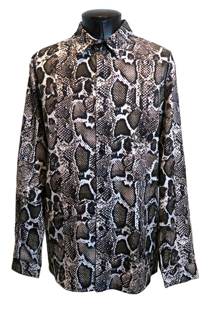 新品 XXLサイズ パイソン柄 ヘビ柄 シャツ 長袖 ブラウン 1183 メンズ 柄シャツ ビッグ 大きなサイズ 蛇 スネーク ロカビリー ウエスタン