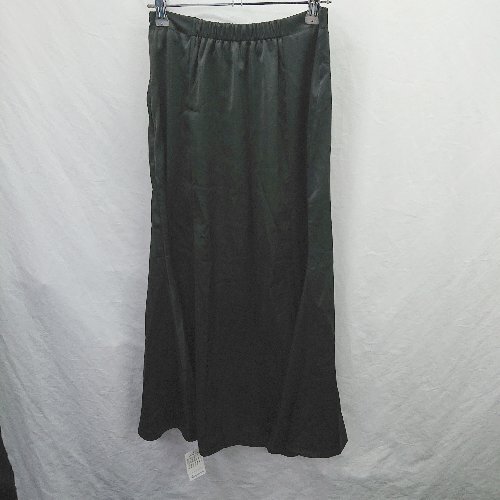 ◇ ⊂ ◎ ●未使用● La-gemme ラジェム サテン調 ロング丈 フレア スカート サイズ1 ブラック レディース E