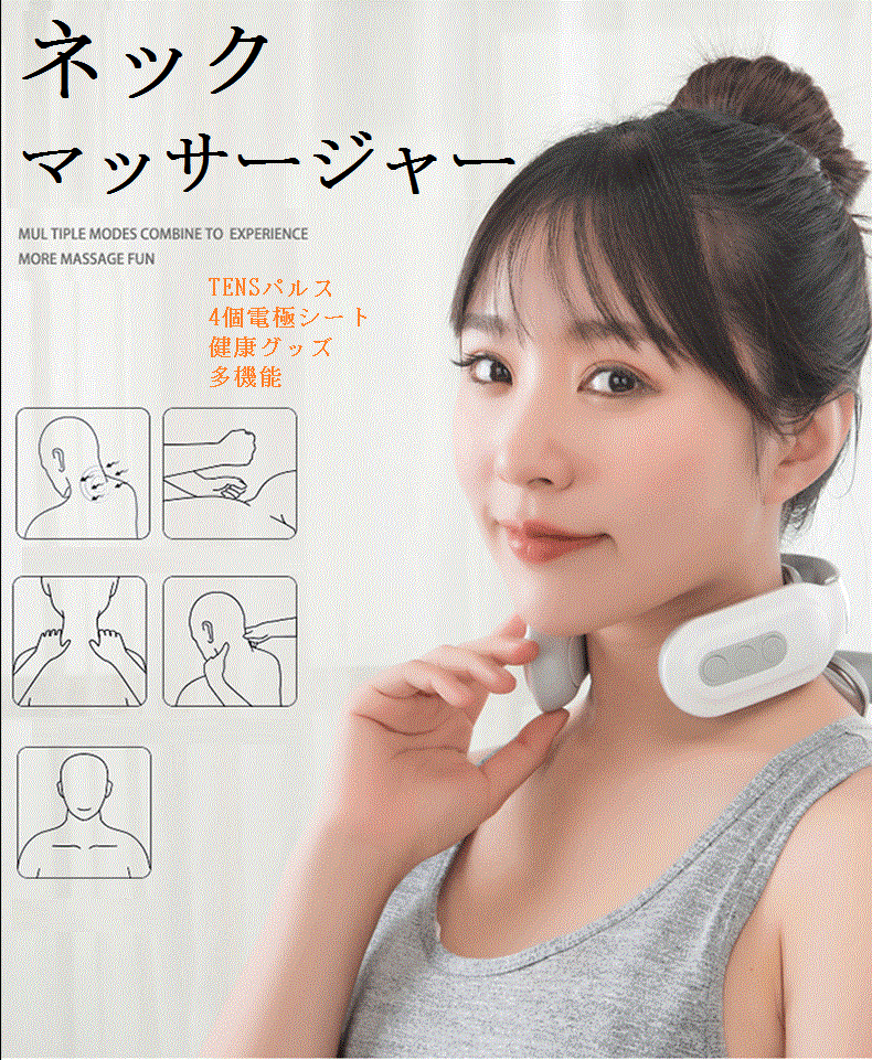 ネックマッサージャー マッサージ器 温熱 肩こり 首 コードレス 振動 TENSパルス 4個電極シート 健康グッズ 多機能 解消グッズ プレゼント
