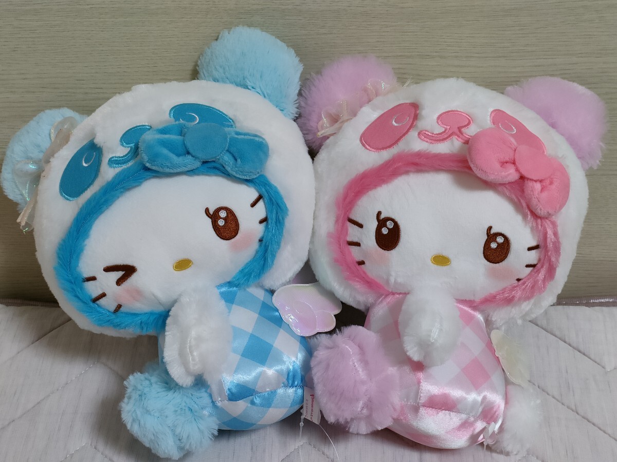 ピンクと水色の可愛いパンダハローキティセットです(^-^)