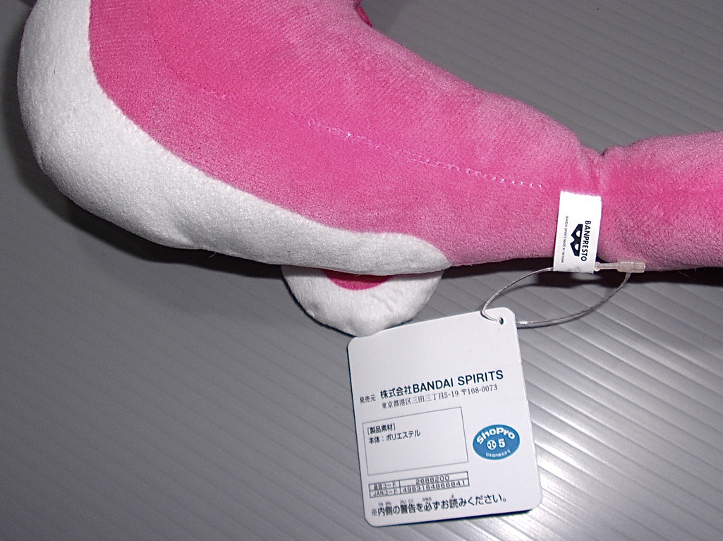 シャリタツの、もふぐっとぬいぐるみ、全3種のうちの1つ、色はピンクです。