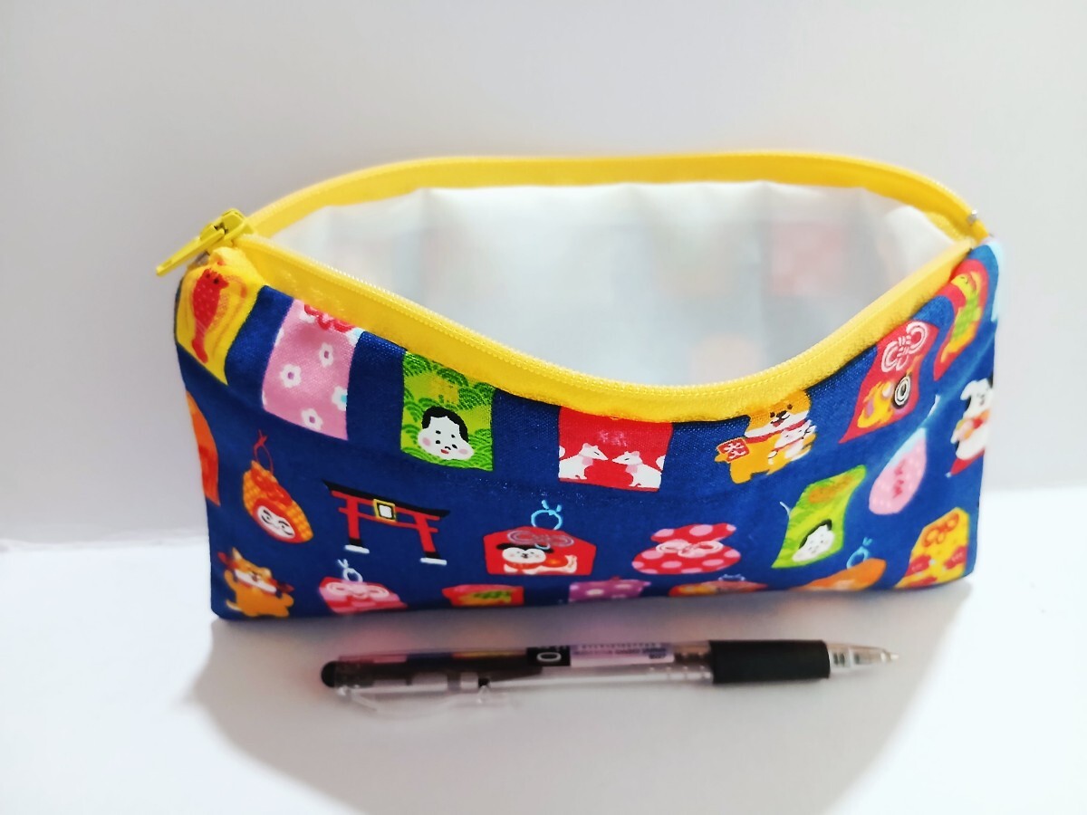 ペタンコ仕様の横長フラットフリーポーチを作りました